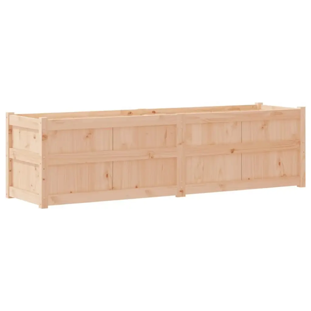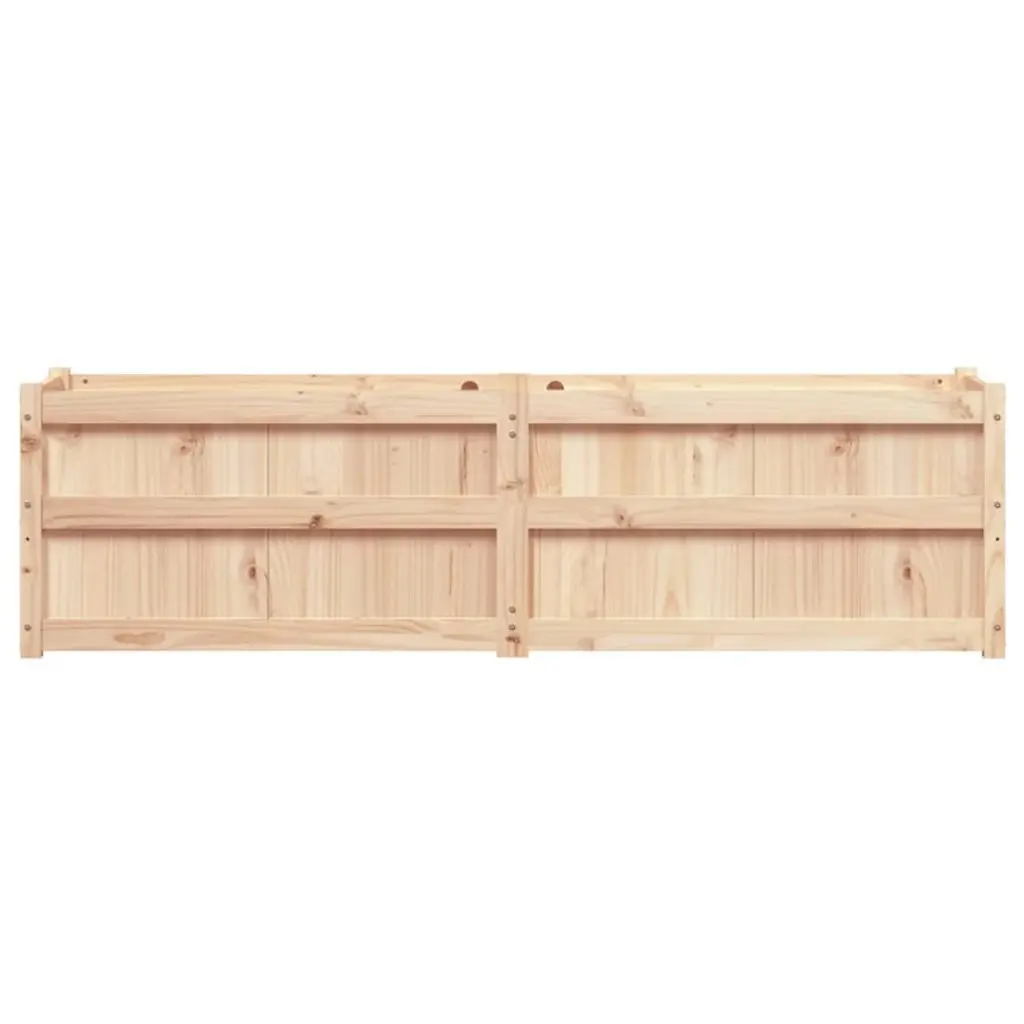 This large rectangular garden planter is perfect for creating a vibrant outdoor garden or enhancing your patio with fresh greenery. Crafted from solid pine wood, it brings a rustic, natural charm to any outdoor space and offers ample room for growing vegetables, flowers, or decorative plants. The planter is designed for outdoor use and is available in multiple color options: Brown pine, Natural douglas, Natural impregnated, Natural pine, and White pine.Key Features• Spacious design: 70.9 in (W) x 19.7 in (L) x 19.7 in (H) provides plenty of space for multiple plants• Made from solid pine or douglas wood for durability and a natural look• Attractive decorative inlays add a stylish touch• UV-resistant materials help the planter withstand outdoor weather• Suitable for patios, balconies, gardens, and terracesDesign & Construction• Rectangular shape with paneled sides and sturdy corner posts• Visible wood grain and knots for a rustic appearance• Available in several finishes, including waxed and oiled options• Designed for easy assemblyAdditional Details• Weight: 54.9 lbs• Drainage: Some variants include drainage holes• Assembly required• SKU: 837504, 837505, 837506, 837507, 837508Available Color Options• Brown pine• Natural douglas• Natural impregnated• Natural pine• White pineThis versatile garden planter is an excellent choice for anyone looking to add both function and style to their outdoor living space. Its generous size and sturdy construction make it ideal for larger gardening projects, while the natural wood finish complements a variety of outdoor decors.