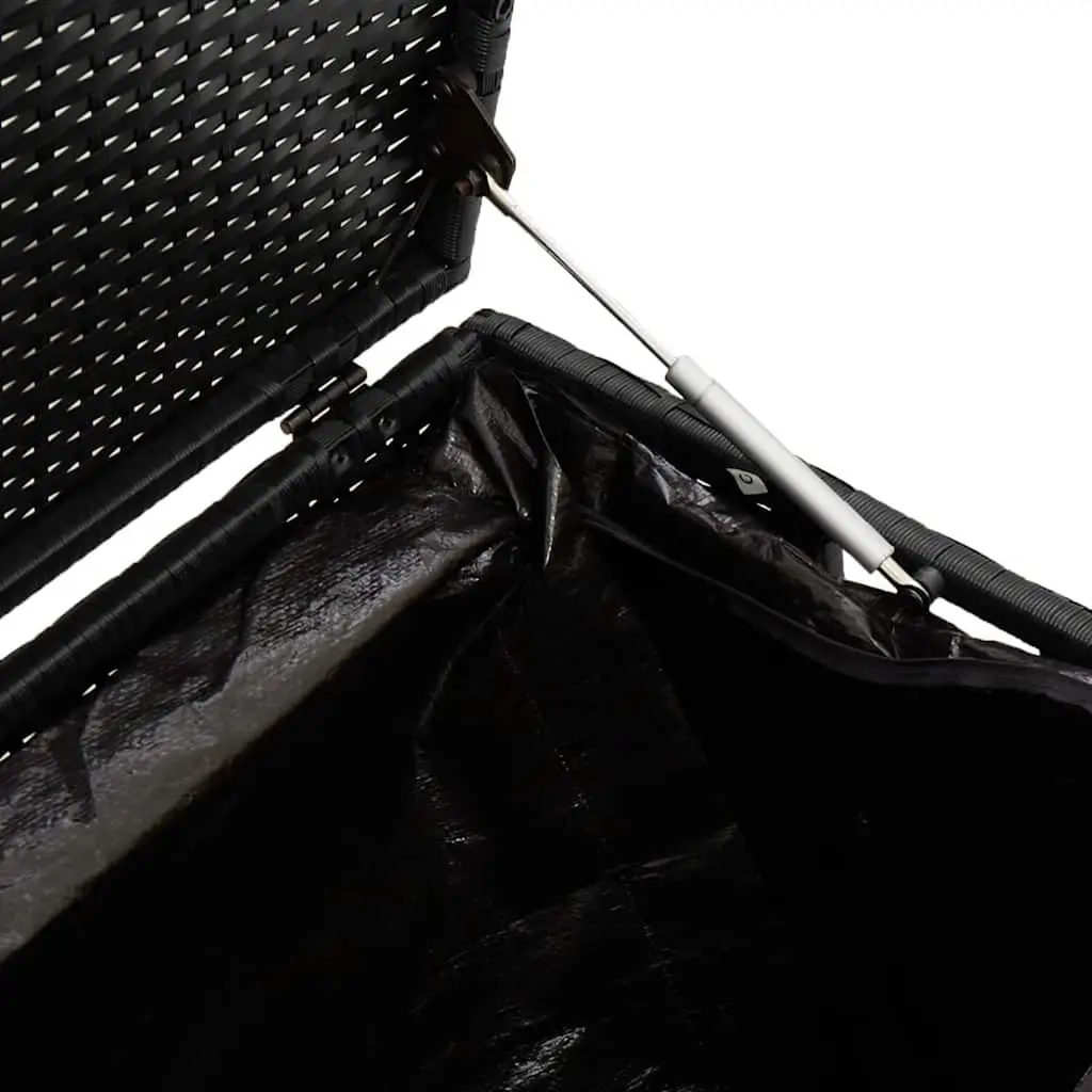 This stylish garden storage box fits right into your outdoor decor, adding a modern flair while being super practical. At 43.3x19.7x22.8 in, this black PE rattan box is perfect for storing all your garden items, whether it's cushions, towels, or other patio essentials, keeping your outdoor area tidy and clutter-free. Stylish Design: The sleek, black finish and woven texture give this storage box a modern look that suits any outdoor vibe.Weather-Resistant: Built with water-resistant and UV-resistant materials, it keeps your items safe from the elements, ensuring long-lasting use and durability.Versatile Usage: Great for various outdoor spots like your garden, patio, or balcony, meeting different storage needs in a compact design.Convenient Features: The gas spring mechanism allows for easy opening and closing, making it hassle-free to access your stored belongings.User-Friendly Maintenance: Just a simple clean with warm water and a damp cloth keeps it looking good, preserving its charm through all seasons.
