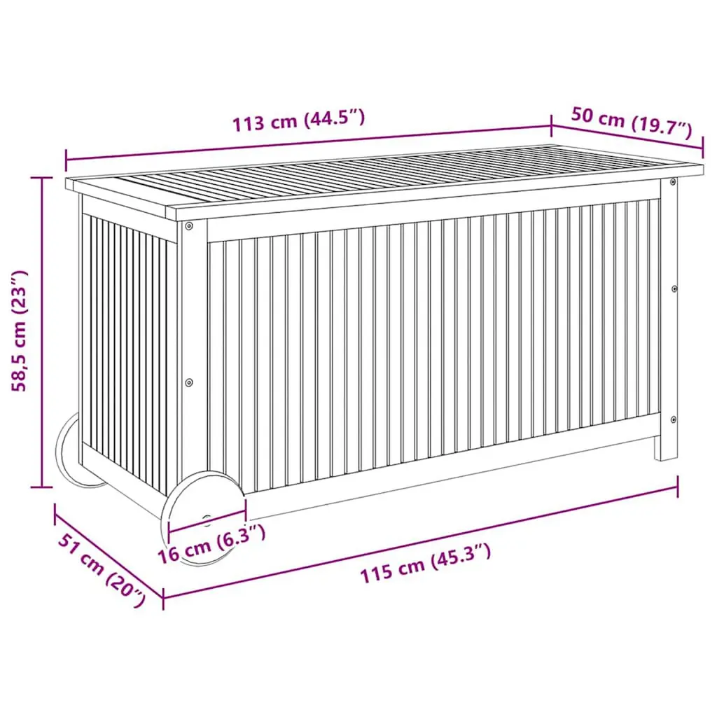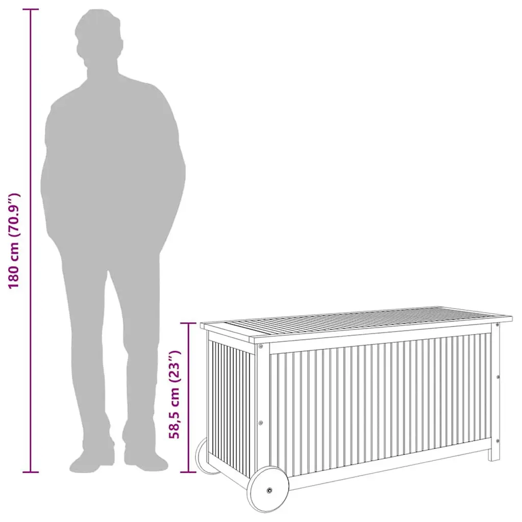 This Garden Storage Box brings together practicality and style, made from solid acacia wood that gives off a lovely, welcoming vibe. It's perfect for outside use, helping keep your garden bits organized while sprucing up your area with its traditional look. Ample Storage: The box has a spacious interior, perfect for stashing outdoor cushions, blankets, gardening tools, and more. It keeps your space tidy and lets you grab things quickly when you need them.Durable Material: Made from solid acacia wood, this box is built to last. Its sturdy frame can handle different weather conditions, making it a reliable choice for years.Water-Resistant Features: The timber's been treated to repel moisture, keeping your belongings safe from damage caused by rain or spills. It's a smart buy for any outdoor areas exposed to the elements.Wheels for Mobility: Fitted with strong wheels, this box can be easily moved to different spots in your garden or patio. Shift it around hassle-free whenever you want to change things up or clean up the area.Traditional Aesthetics: Its smooth finish and rectangular design add a touch of classic style to your garden decor. It fits in nicely with all kinds of outdoor styling, no matter the surrounding furniture.