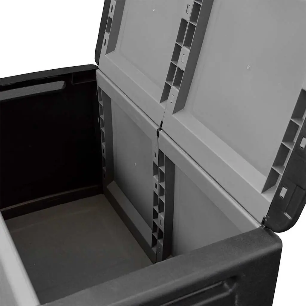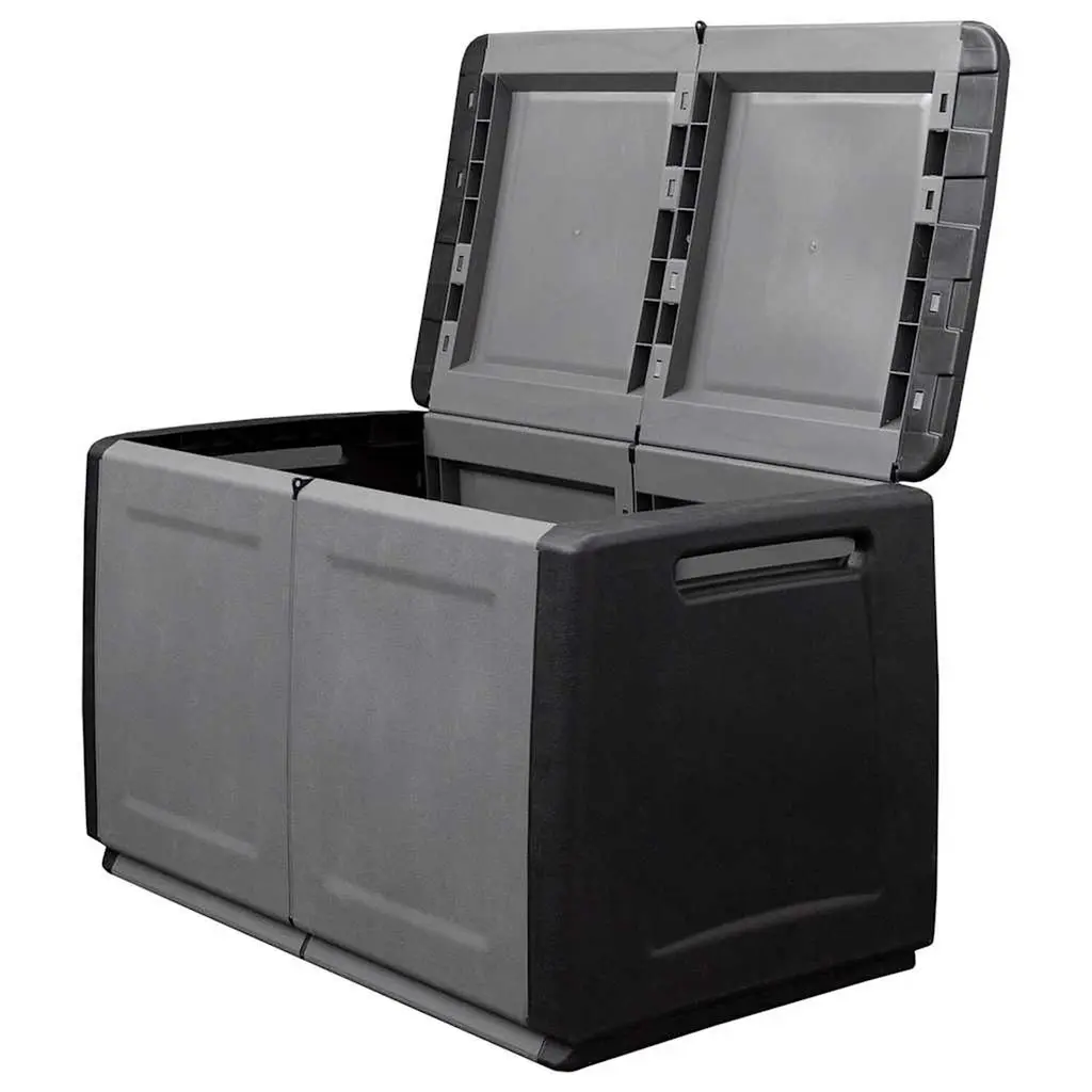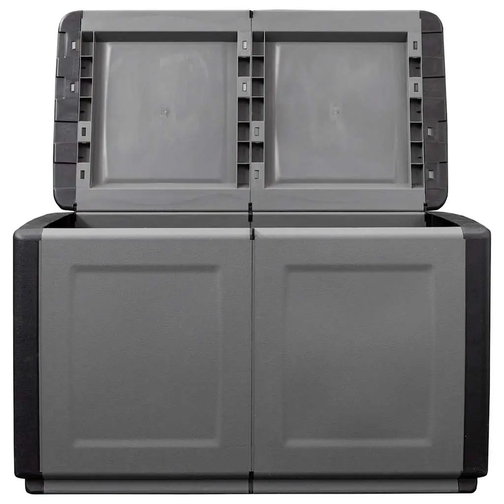 This garden storage box, dressed in sleek dark grey and black, adds a modern touch to your outdoor area while giving you plenty of storage for garden tools, cushions, and bits. It's built from tough polypropylene to stand up to the weather, making it just right for keeping your outdoor stuff safe and tidy. This storage box has a generous capacity of 60.6 gallons, perfect for all sorts of outdoor items from cushions to tools.Made from 100% polypropylene, this box is both strong and lightweight, making it easy to move around.The UV-resistant material keeps your belongings safe from those harsh sun rays, prolonging their lifespan and quality.The matte finish not only looks elegant but also improves durability by resisting scratches and fading.With dimensions of 37.8 in x 37.8 in and a height of 22.4 in, this storage solution fits right into any outdoor setting.