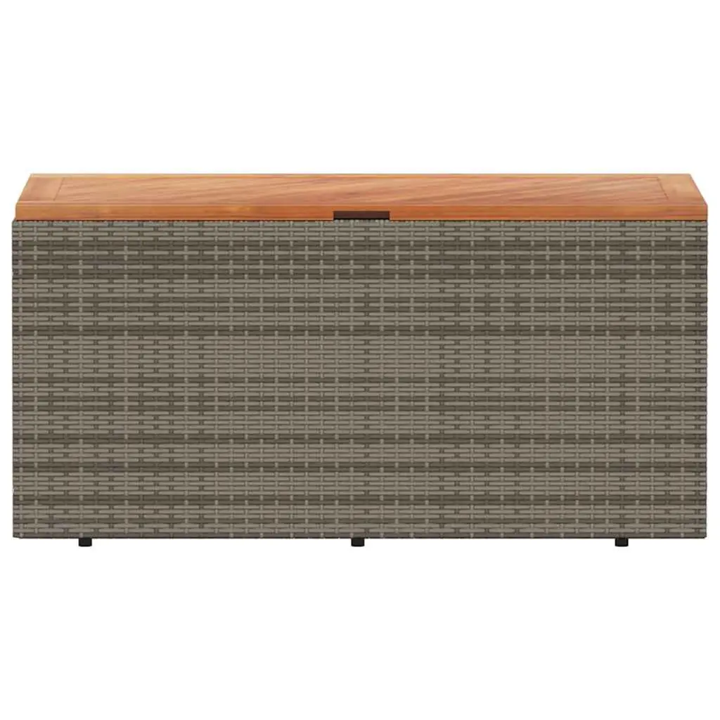 This Modern Garden Storage Box is spot on for keeping your outdoor areas tidy and adds a stylish seating option. Made from tough PE rattan and solid acacia wood, it really spruces up your outdoor vibe, making it perfect for gardens, patios, or balconies. Weather-Resistant Materials: Built from PE rattan and powder-coated steel, this box can withstand the weather, so it lasts longer and needs less maintenance.Extensive Capacity: The roomy interior is ideal for storing cushions, toys, or gardening tools, making it a handy addition to your outdoor space.Elegant Design: The modern looks and sleek finishes make this storage box not just functional but also a stylish enhancement for any outdoor area.Comfortable Seating: Fits up to two people, giving you a cozy spot to sit outside that combines style with practicality.Easy Care: The oiled finish helps protect against moisture and stains, so your box stays looking sharp and is easy to manage.