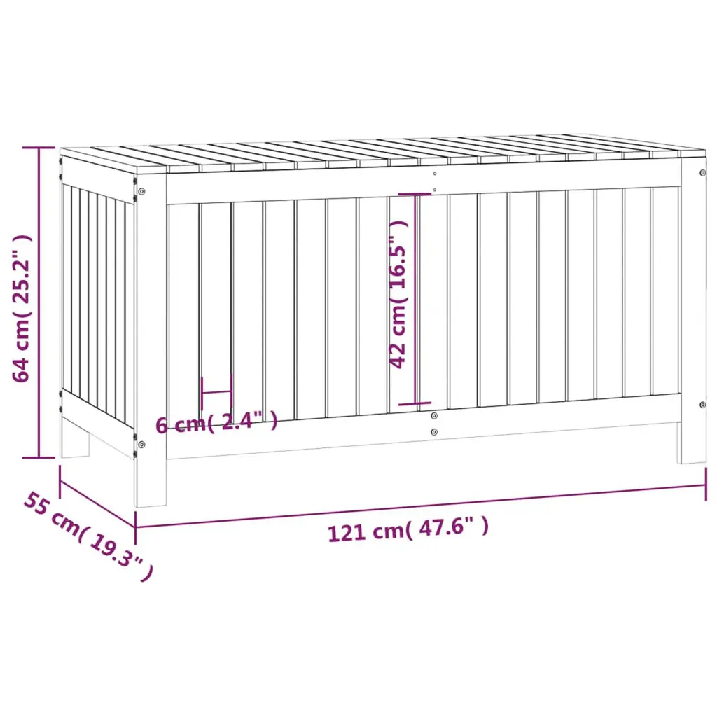Vidaxl Garden Storage Box Grey Solid Pine Wood 47.6 X 21.7 X 25.2 In