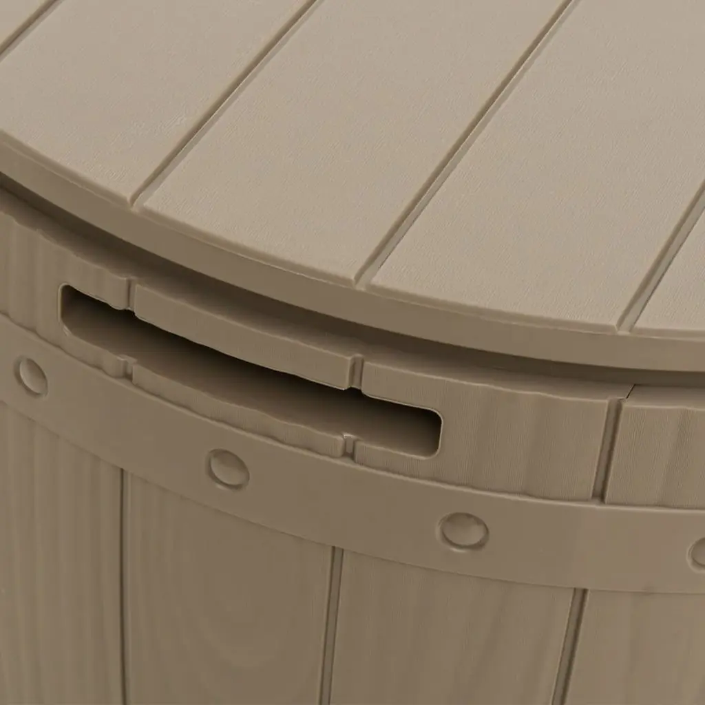 This 3-in-1 garden storage box is a great addition to any outdoor area, blending functionality and style perfectly. Made from high-quality polypropylene, it boasts a lovely wood-look finish that enhances your garden, backyard, or balcony while providing loads of space for cushions, toys, and gardening tools. Convertible Design: This nifty design lets the storage box turn into seating or a tabletop easily. It’s perfect for gatherings, serving as both a storage space and a spot for guests to sit.Ample Storage: With a maximum space of 33.5 gallons, you’ve got room to stash cushions, tools, or garden bits effortlessly. This big capacity helps keep your outdoor area neat, letting you make the most of your space.UV Resistance: Built from UV-resistant polypropylene, this storage box is tough against sunlight. Use it outside with peace of mind, knowing it’s not going to fade or wear out over time while looking great.Modern Style: The light brown color and wood-like texture bring a contemporary flair to your garden furniture. Its chic design fits right in with your current setup, sprucing up your outdoor vibe.Easy Care: Keeping this storage box clean is a breeze; just wipe it down with a damp cloth. Use a waterproof cover when you’re not using it to keep it in tip-top shape.