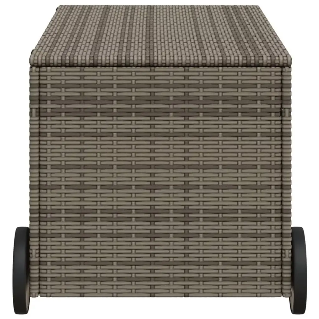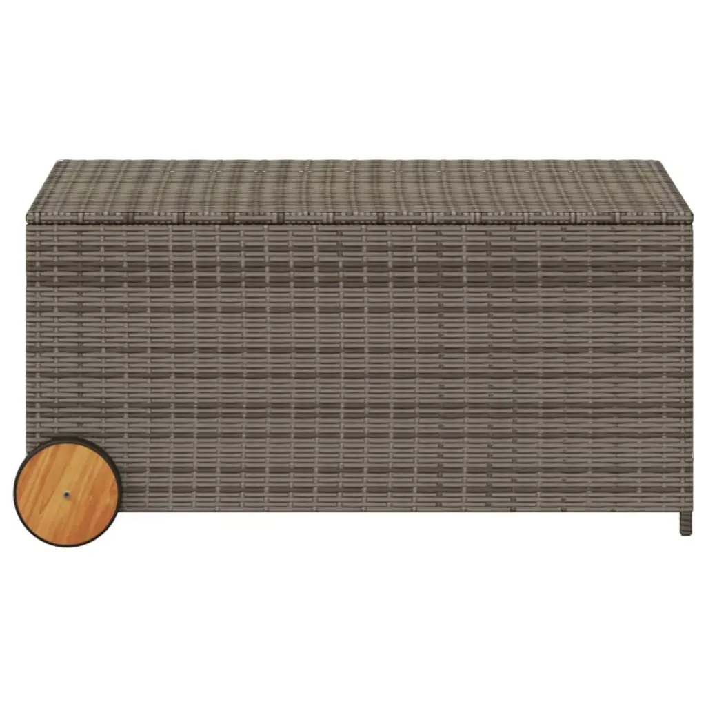 Vidaxl Garden Storage Box With Wheels Gray 50.2 Gallon Poly Rattan
