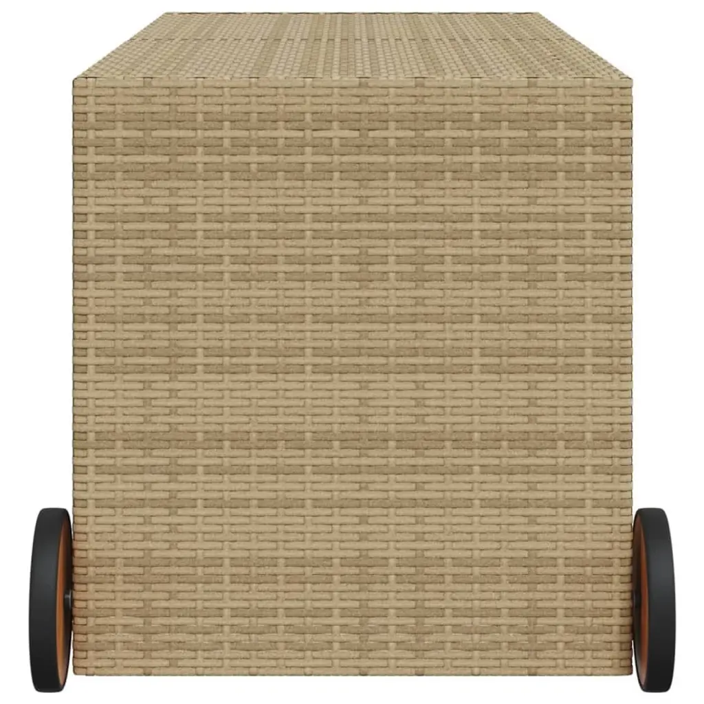 Vidaxl Garden Storage Box With Wheels Mix Beige 74.8 Gallon Poly Rattan