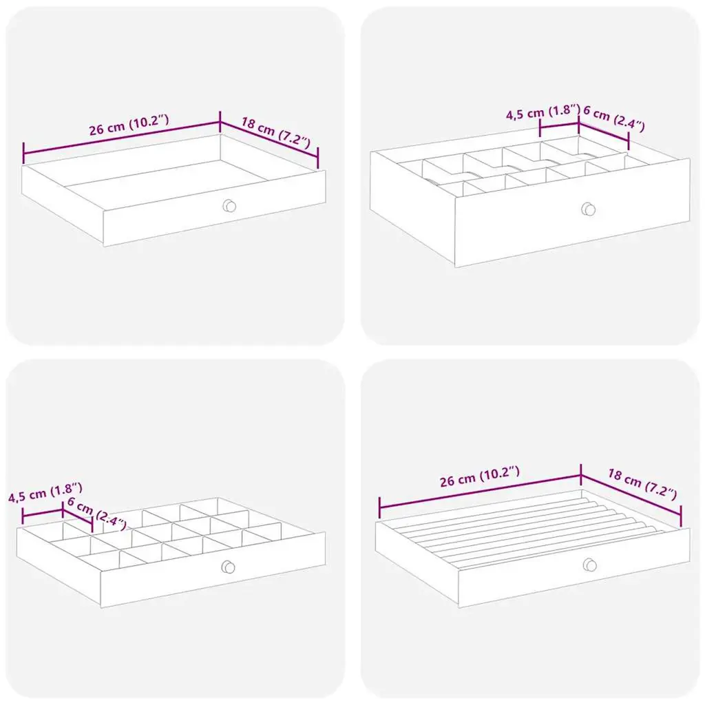 Organise your jewellery collection with ease using the 10-layer jewellery box, designed to combine elegance and practicality.Ample storage: The jewellery box features ten layers with multiple compartments for effortless organisation. The top to the seventh layer offers spacious drawers for jewellery storage. The eighth layer features square compartments for bracelets and necklaces, while the ninth layer is designed for rings and studs. The bottom layer includes holders for watches, keeping all jewellery organised and accessible.Soft velvet lining: The interior of the jewellery box is lined with velvet, offering a soft touch that exudes elegance. This gentle lining not only protects your precious jewellery from scratches but also elevates the overall aesthetic, creating a refined space for your treasured pieces.Elegant design: The leatherette finish and metal knobs of the jewelry box enhance the beauty of any dressing table, providing an attractive storage solution for treasured pieces.Versatile use: Ideal for personal use or as a thoughtful gift, this jewellery box suits various styles and occasions, appealing to both casual and discerning jewellery lovers.Long-lasting and easy maintenance: Made from durable material, the jewellery box requires minimal effort to clean by simply wiping it down with damp cloth.