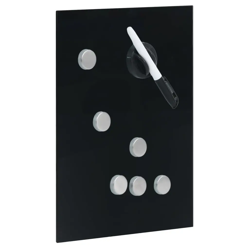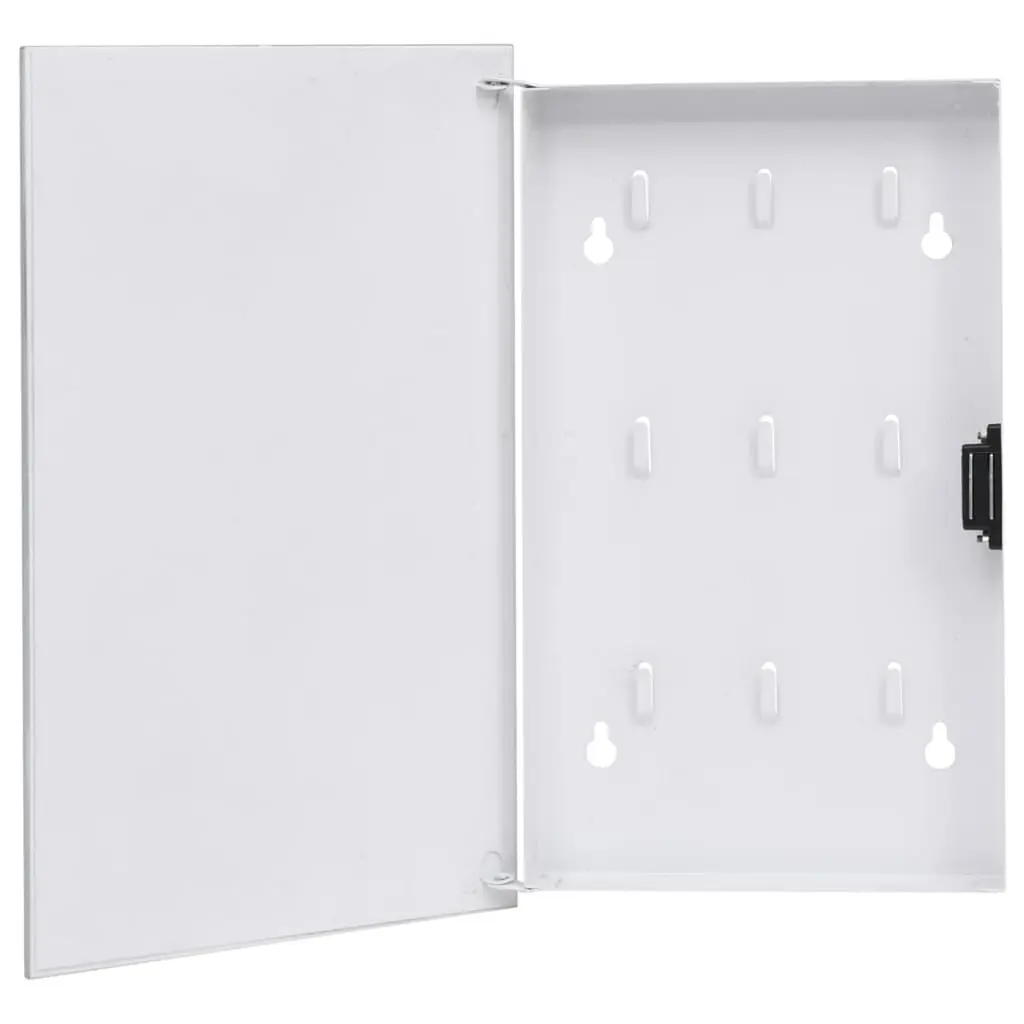 This key box features a magnetic front door and is suitable for your living room and office.The key cabinet is made of strong powder-coated steel with 9 hooks in the cabinet, providing ample storage space for your keys. The magnetic front door is made of tempered glass and ideal for sticking notes, photos and other important items. Paper items are also held firmly in place on the cabinet front using one of the 6 magnets. Additionally, you can even write on the magnetic board with the pen. It is easy to clean with the included board wiper.The key box provides an elegant solution to keep track of your keys and to help organize your home.