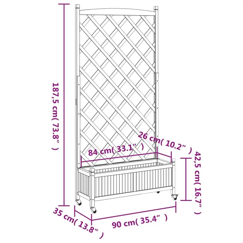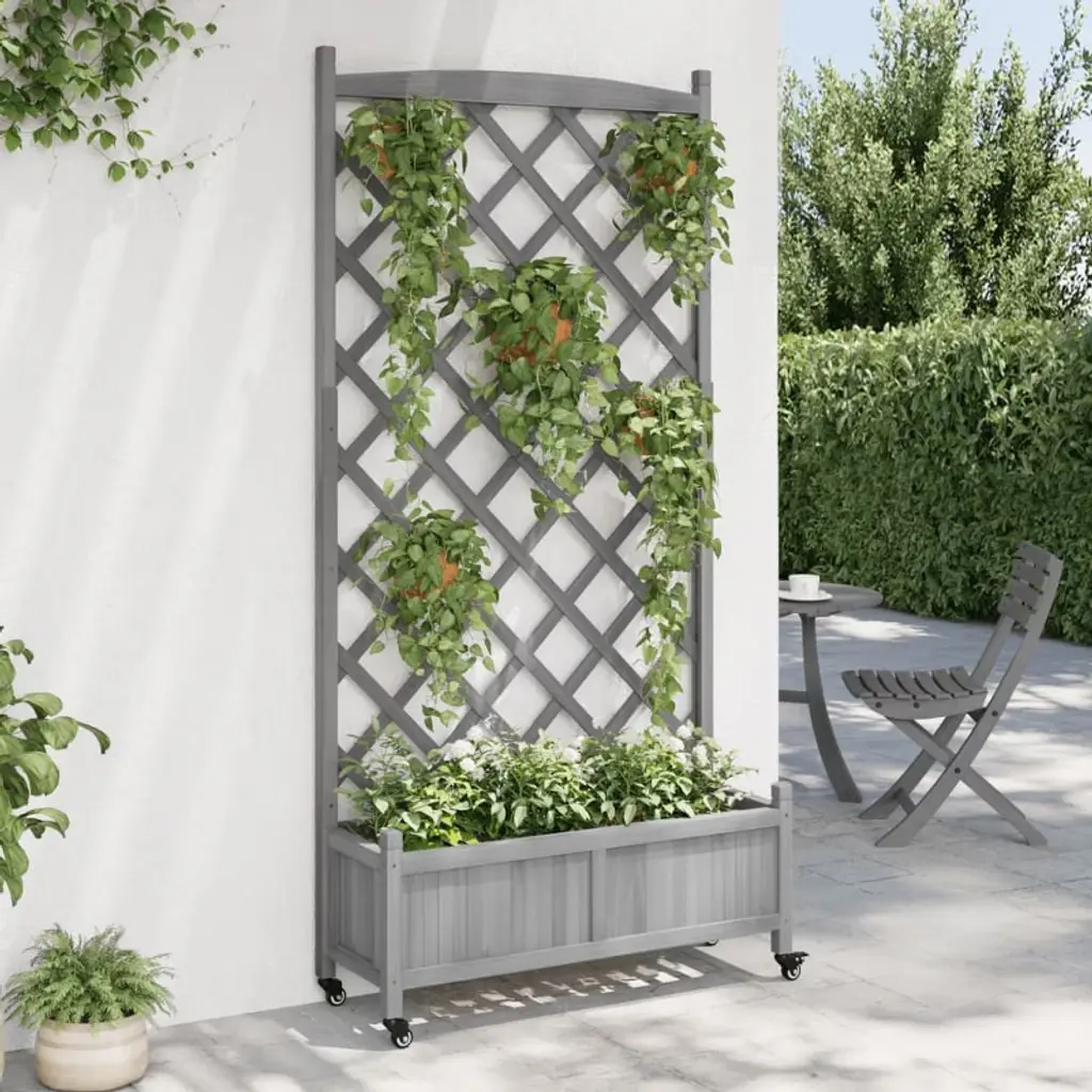 Vidaxl Outdoor Planter With Trellis And Wheels - Solid Fir Wood, Spacious Flower Box, Integrated Support For Climbing Plants, Gray, 35.4"x13.8"x73.8"