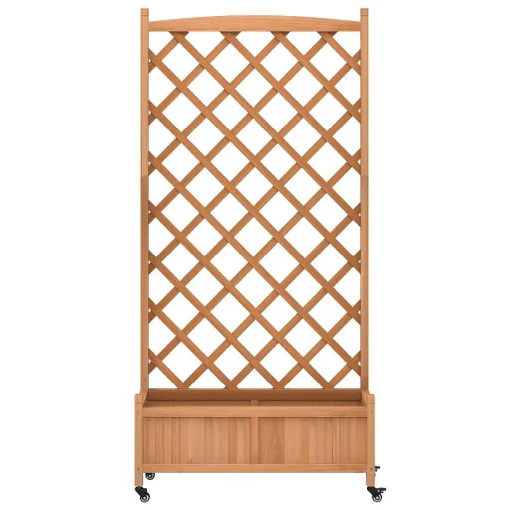 Vidaxl Planter With Trellis-wheels | Outdoor Solid Fir Wood-flower Box | Brown Wooden-garden-patio-terrace | Rectangular-fir-planter