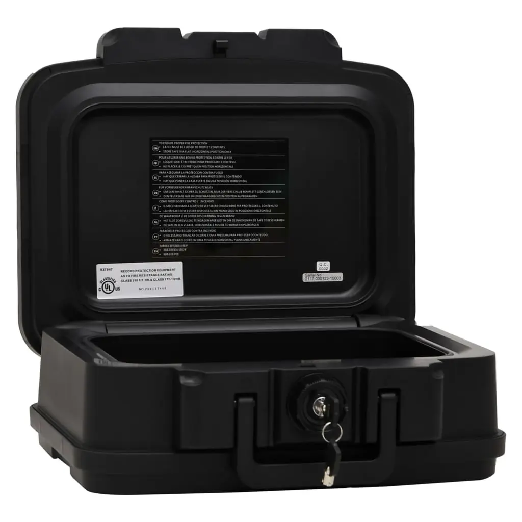 The fireproof and waterproof safe box is perfect for keeping your important documents and valuables safe including passports, certifications, cash, Jewelry and so on.Fireproof: The fireproof box is heat-proof to protect your most important documents and valuables from fire damage for up to 1/2 hour at 177°C (350°F).Waterproof: The waterproof box is SGS Verified to protect your valuable items from flood damage for up to 24 hours of submersion.Security protection: The safe box has a key lock mechanism for added security and to prevent the lid from opening in the event of a fire, flood, or unwanted viewers.Durable material: The safety deposit box is made of polypropylene. It is lightweight, tough, and able to withstand impact.Easy to transport: The key lock box comes with a convenient carrying handle for easy transportation and portability.