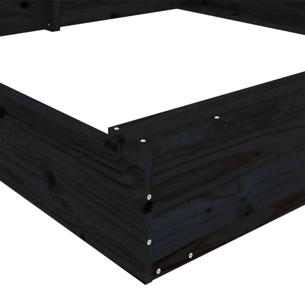 Vidaxl Sandbox Black Solid Pine Wood 63 In X 63 In X 7.9 In Seats 2