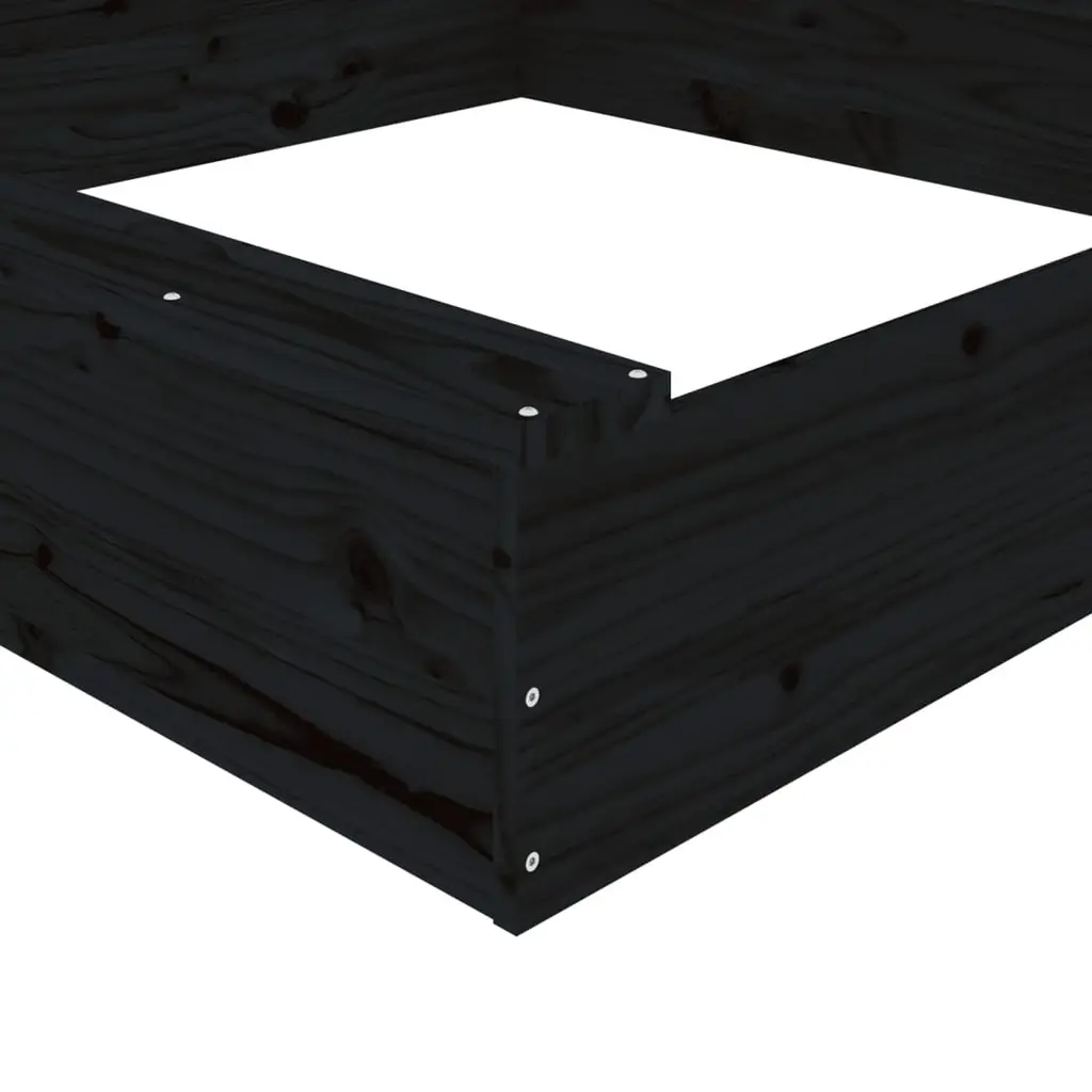 Vidaxl Sandbox Black Solid Pine Wood Medium Durable Square Rustic