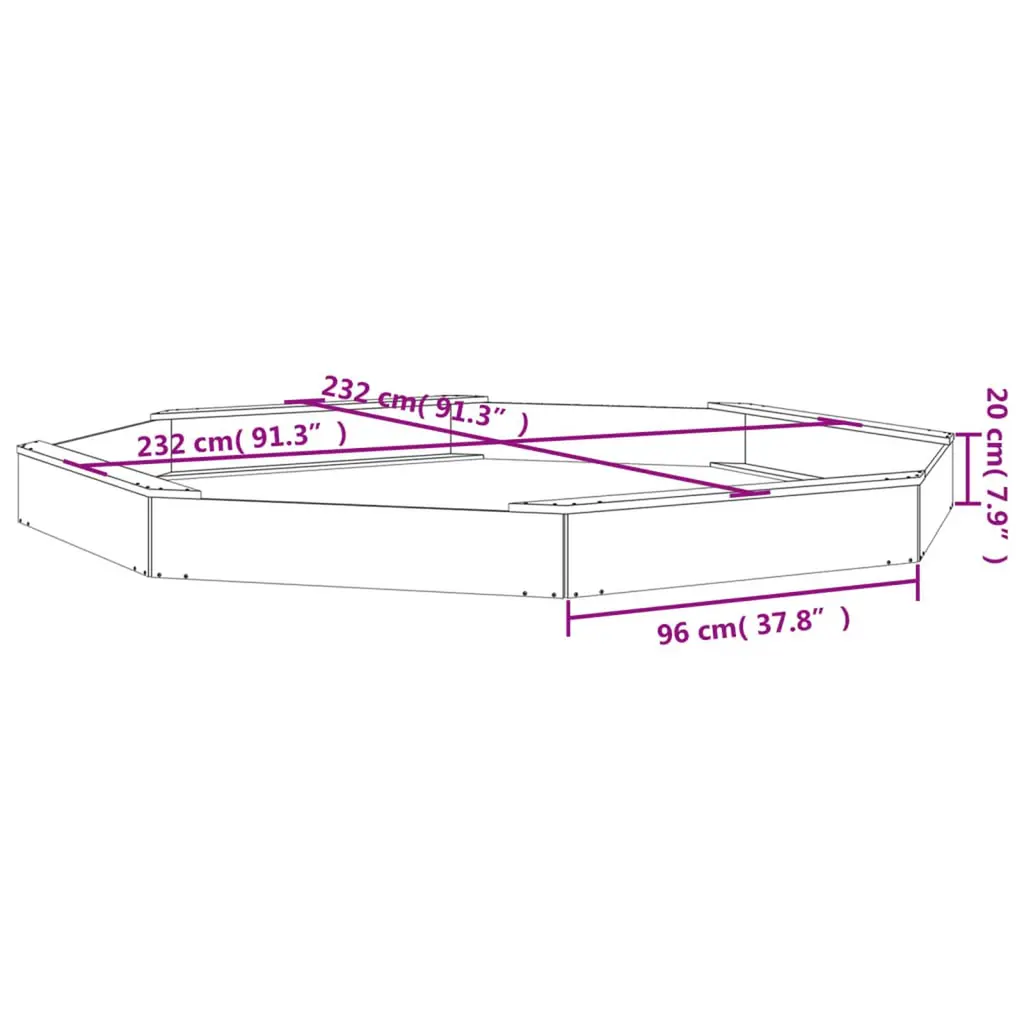 This Octagonal Wooden Sandbox offers a delightful outdoor play space designed to cultivate creativity in kids aged 2-8. Made from solid pine wood, this sandbox has a lovely rustic finish that fits in perfectly with any garden, creating a safe and fun space for sensory play while inviting kids to unlock their imaginations. Durable Construction: This sandbox is built from high-quality solid pine wood, so you know it's gonna last and handle outdoor conditions. The sturdy design supports lively play and stands the test of time, giving your kids endless memories of outdoor fun.Spacious Design: Measuring 91.3 in long and wide, this sandbox gives plenty of space for two kids to get creative without feeling cramped. The octagonal shape allows for different seating arrangements, making it a perfect spot for friends and siblings.Natural Appearance: The rustic wood finish makes this sandbox not just practical but also easy on the eye, adding charm to your garden. It has a classic look that lets the natural beauty of the wood shine through.Comfortable Seating: The built-in seating around the edge provides a comfy spot for the kids to take a break during their play. This thoughtful touch means kids have a dedicated place to sit while they dig and build.Creative Play Area: Great for imaginative and sensory play, this sandbox encourages kids to explore and express their creativity. Parents will love how it promotes outdoor activity and helps kids interact and develop through hands-on fun.