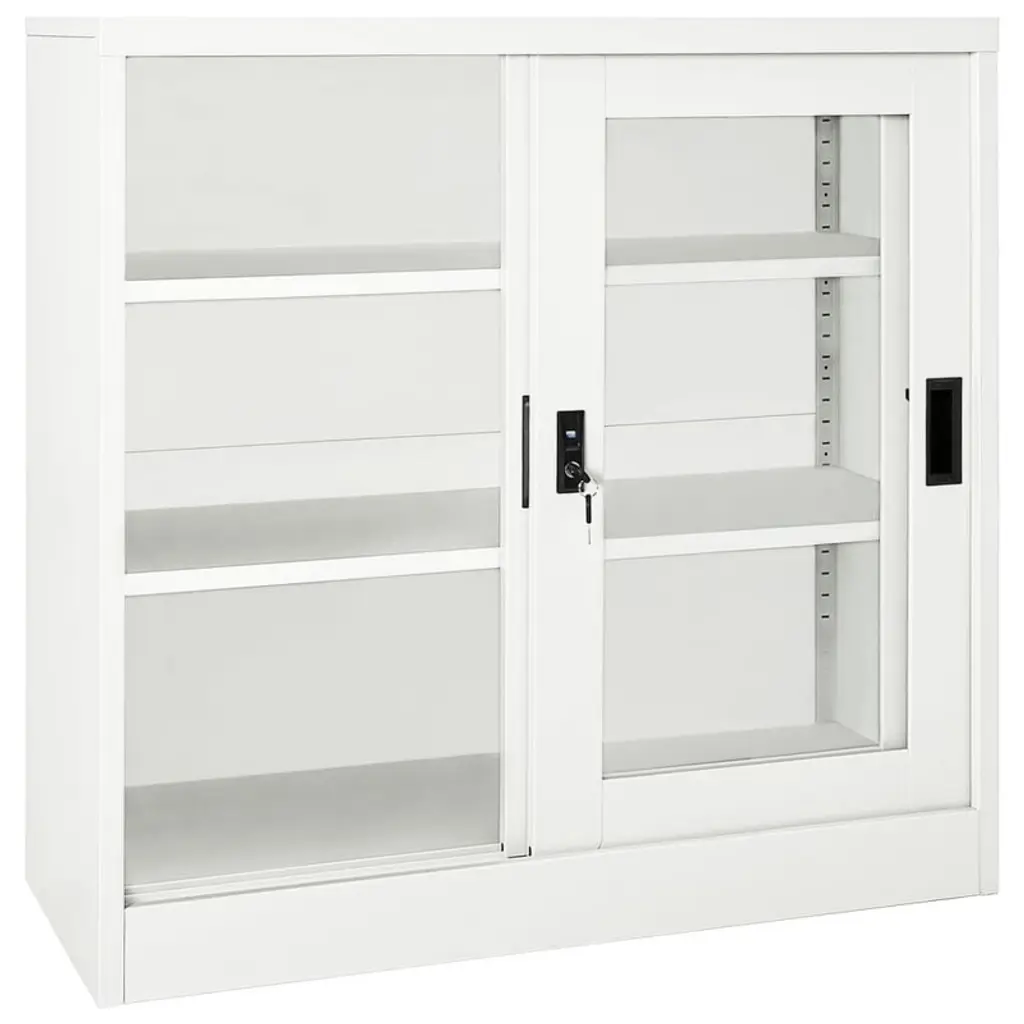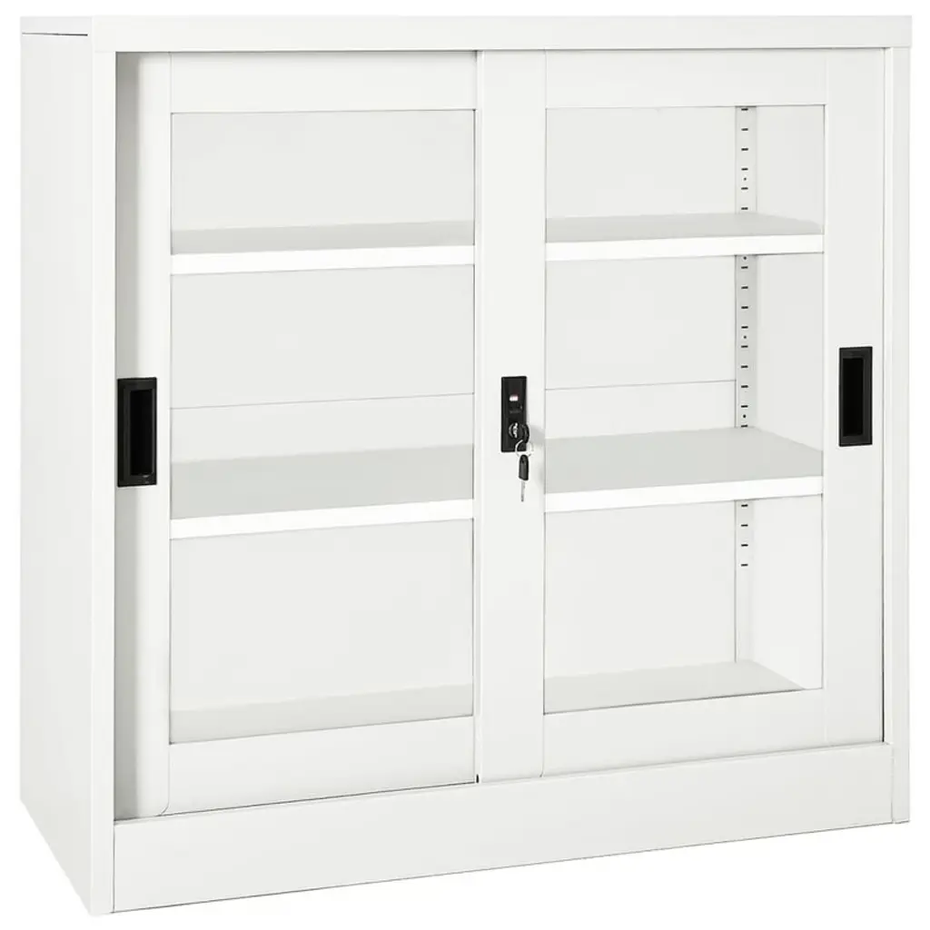 Vidaxl Sliding Door Cabinet White Steel Medium Locks - White Without Planter Box