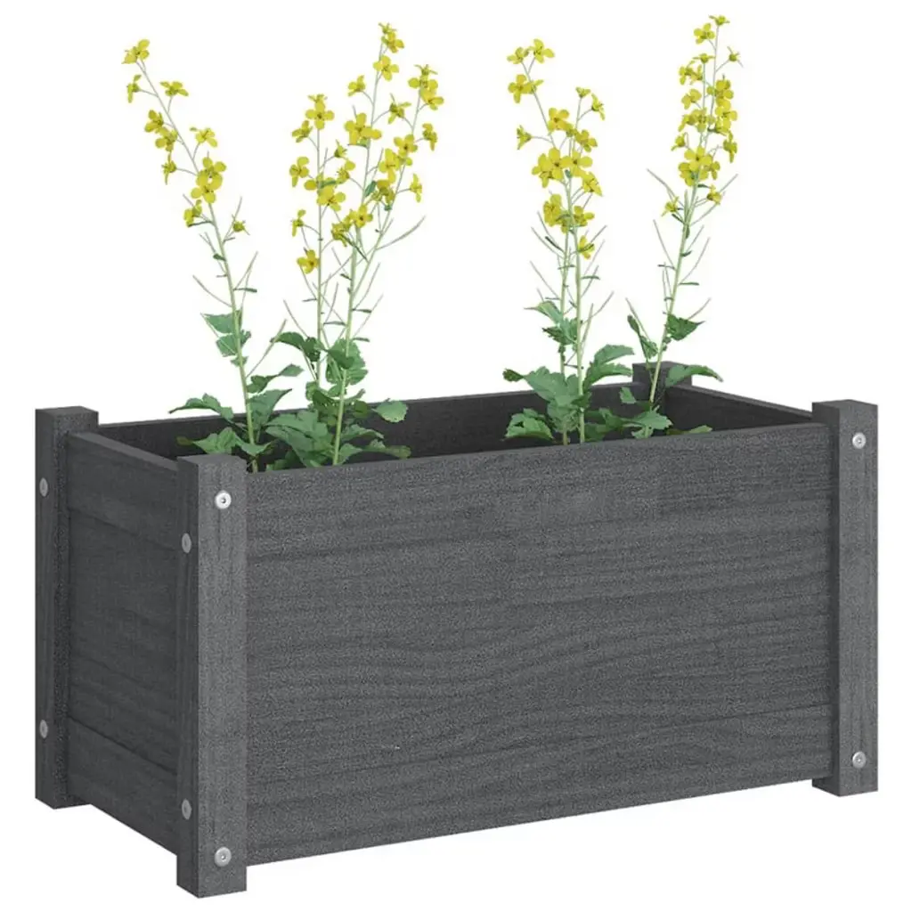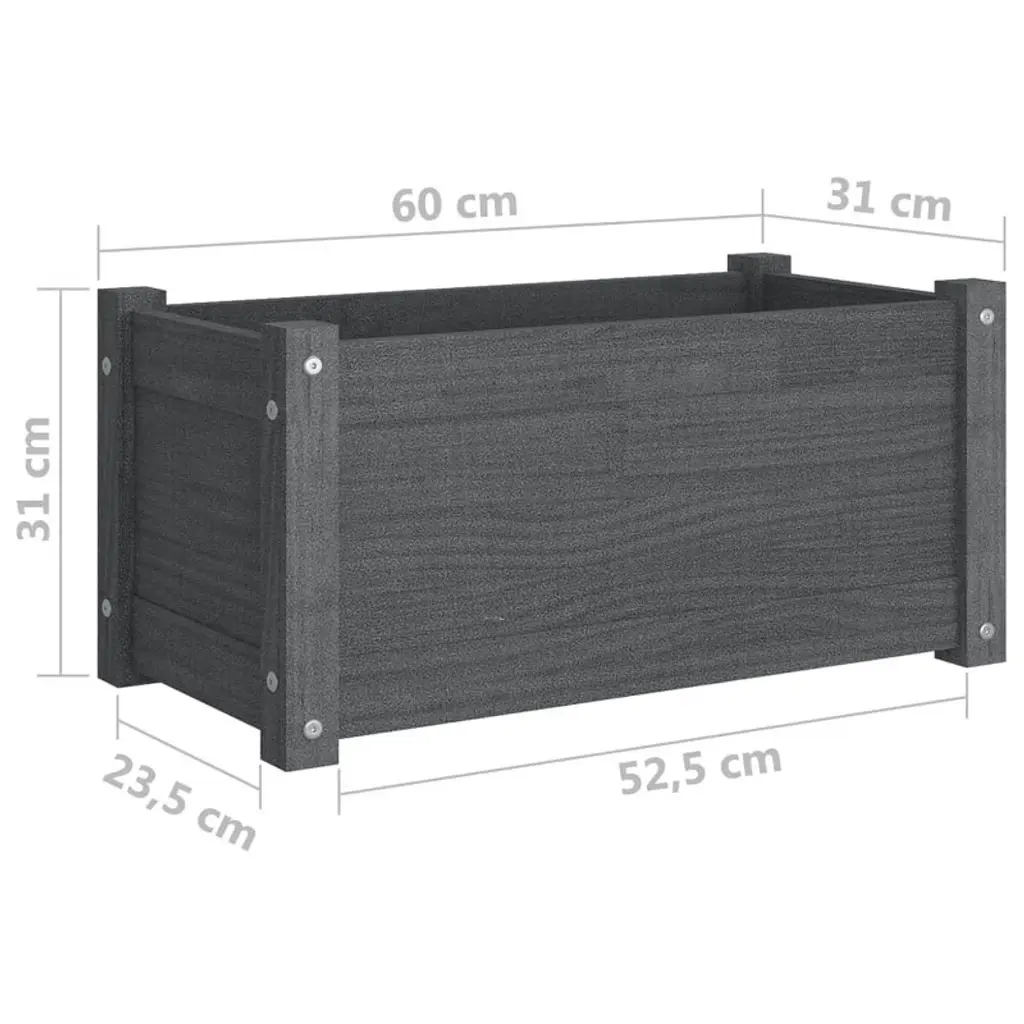 Vidaxl Solid Pinewood Garden Planter - Outdoor Rectangular Flower Box, Gray, 23.6"x12.2"x12.2" - Weather-resistant Plant Pot