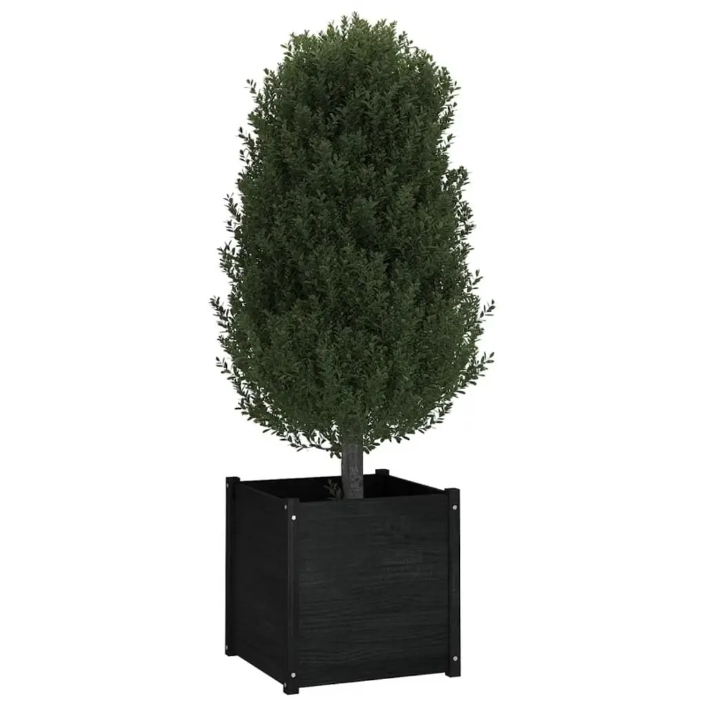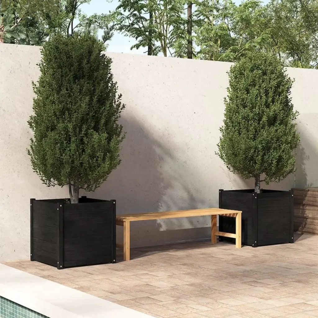 Vidaxl Solid Pinewood Garden Planters 2 Pcs Set, Square Black 23.6"x23.6"x23.6", Durable Weather Resistant Outdoor Flower Boxes
