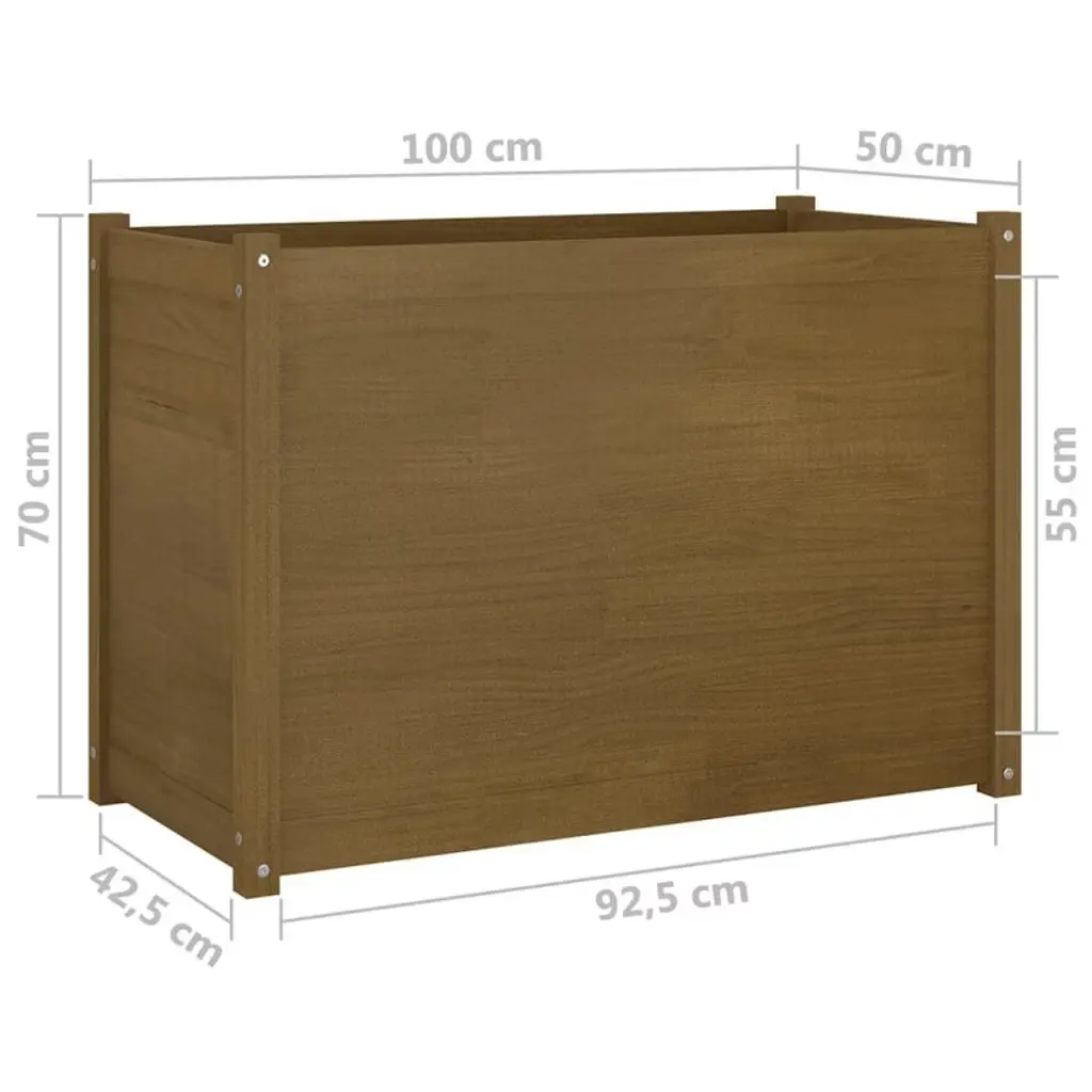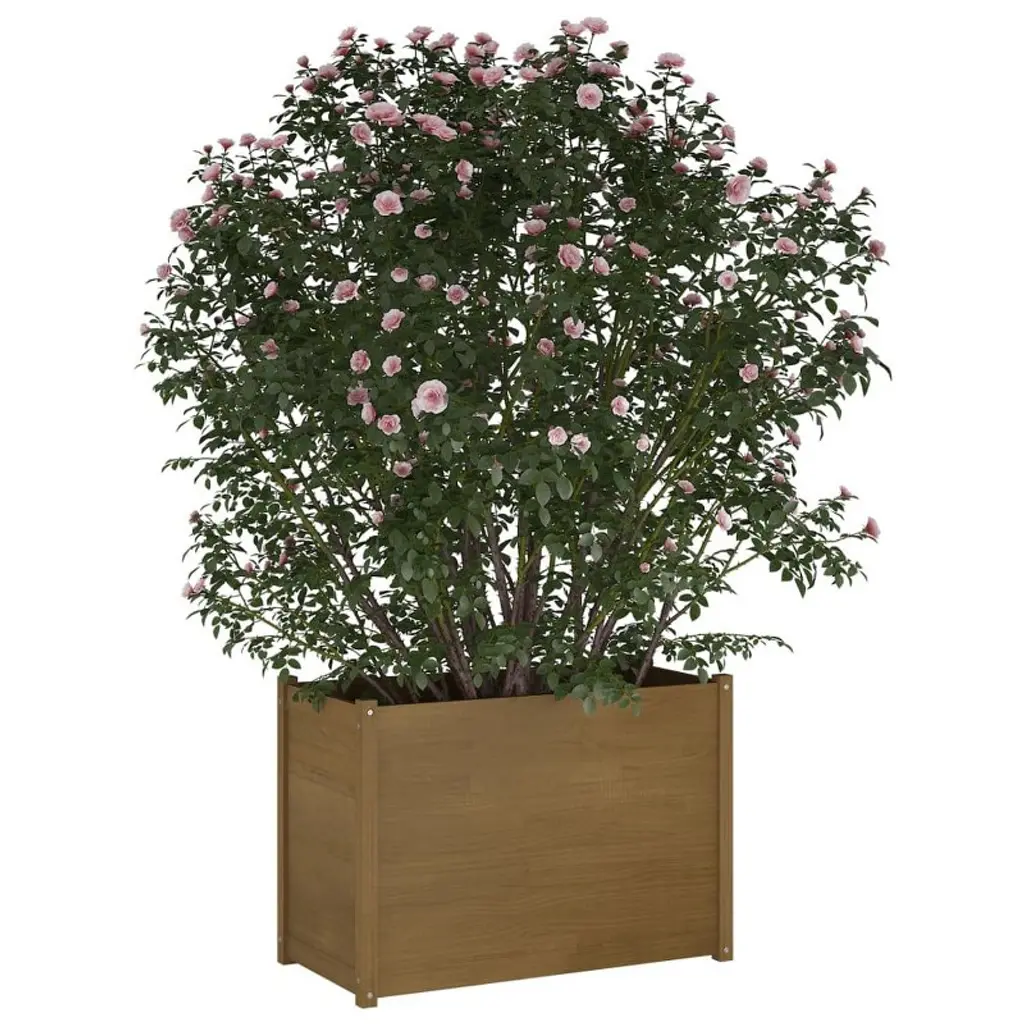 Vidaxl Solid Wood Pine Garden Planter - Spacious, Weather-resistant, Honey Brown, Rectangular Outdoor Flower Box (39.4" X 19.7" X 27.6")