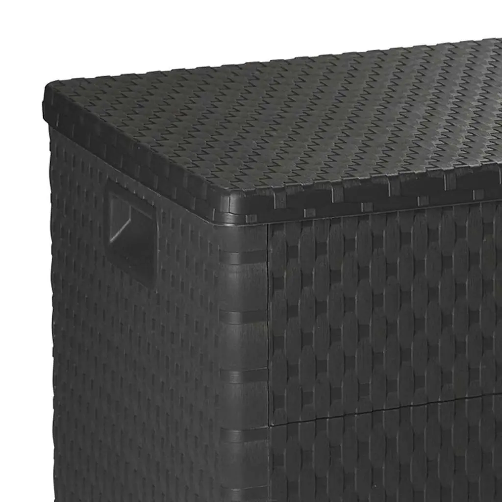 This large garden storage box is perfect for anyone wanting to keep their outdoor spaces sorted and clutter-free. With a roomy capacity of 420 liters, it has plenty of space for cushions, gardening tools, or toys, all while looking stylish with a rattan finish that jives nicely with modern patio vibes and blends right into your outdoor furniture. Ample Storage Capacity: With an impressive 420 liters, this box is great for housing anything from cushions to garden supplies, keeping your outdoor space tidy.Durable Construction: Made from high-grade polypropylene, it's designed to brave various weather conditions while looking good, ensuring it lasts through the seasons.Stylish Rattan Finish: The classy rattan look not only jazzes up your garden's style but also adds a sophisticated touch to your outdoor area, creating a welcoming vibe.Versatile Functionality: This box works well both indoors and outdoors, whether it's sitting on your patio, balcony, or in the garage, catering to all your needs from tool storage to protecting cushions from the rain.Easy Maintenance: Keeping this storage box clean is easy; just wipe it with a damp cloth to keep it looking fresh, steering clear of harsh chemicals that could damage the material.