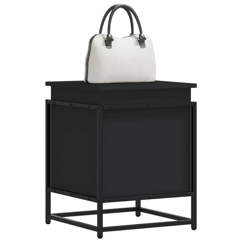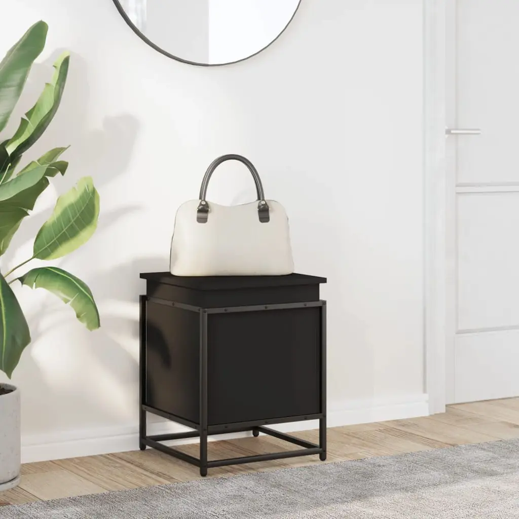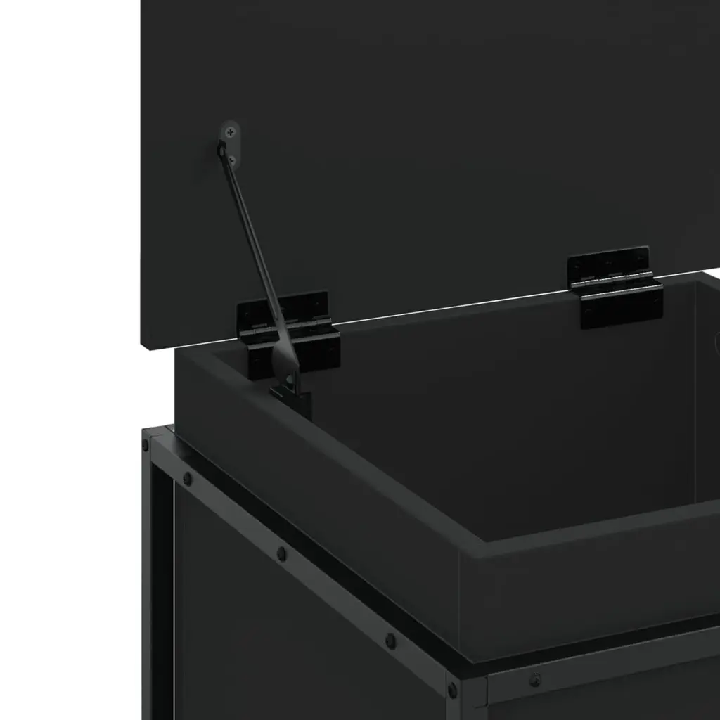 Vidaxl Storage Box Black Engineered Wood, Metal Medium Storage Box
