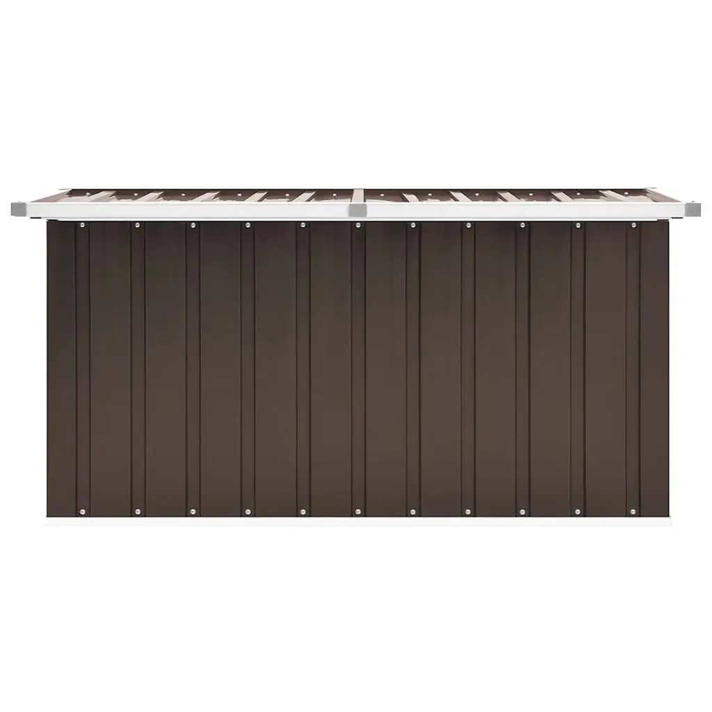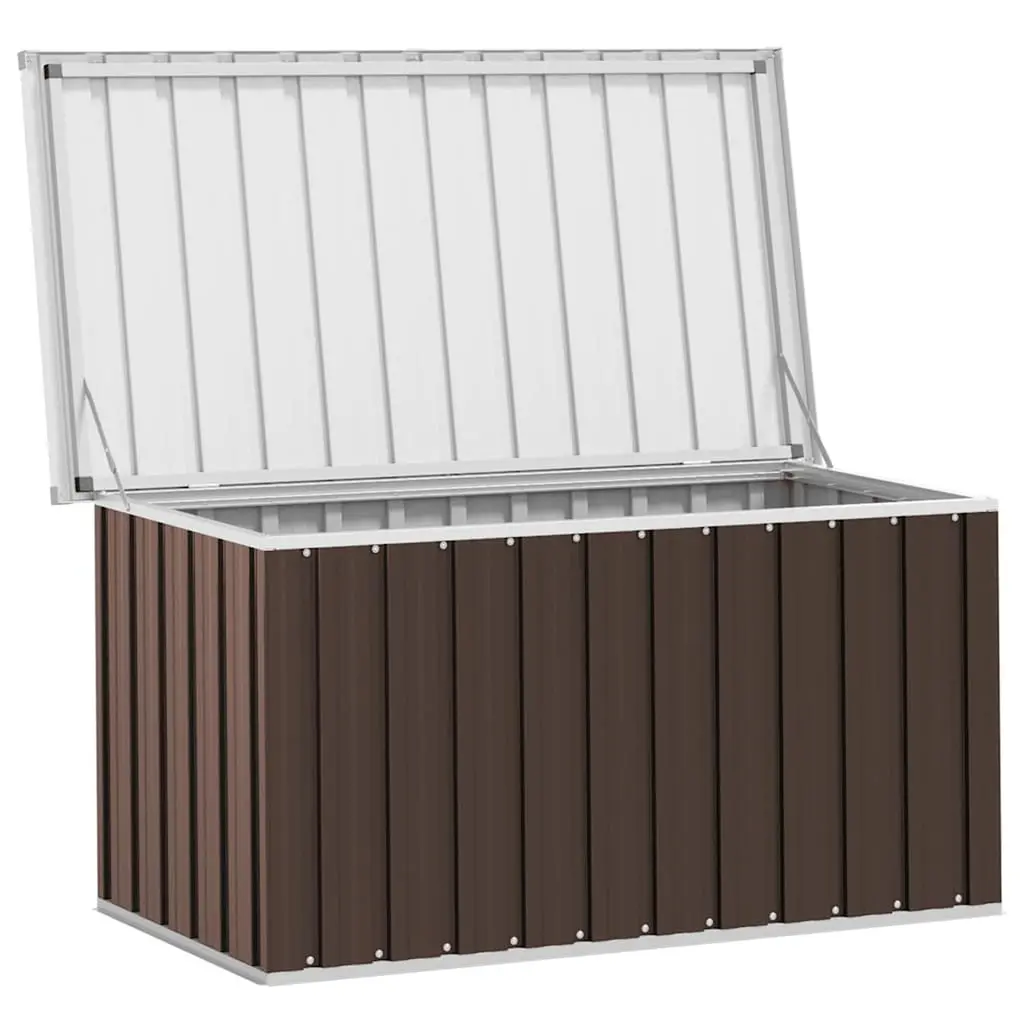 This garden storage box is a must-have for your outdoor space, built from tough galvanized steel to hold up against the weather while adding a modern flair to your patio or garden. With its generous size, this box has loads of room for cushions, tools, and other garden bits, keeping your area tidy and looking good. Spacious Storage: The box is big, measuring 50.8 in x 26.4 in x 25.6 in, making it a great spot to keep garden cushions, tools, and more within reach.Durable Structure: Made from strong galvanized steel, ensuring it lasts and can take whatever the outdoors throws at it. It won't rust or decay, so you can rely on it for outdoor use.Water Resistant: While it’s not fully waterproof, the box keeps your stored items safe from light rain or moisture. You can relax knowing your belongings will stay in good shape.Modern Design: The chic brown and gray color combo with a smooth finish lets this storage box fit right into any garden style, combining function and look.Easy Assembly: Putting it together is straightforward and requires just a screwdriver and a couple of people, making it quick to set up.