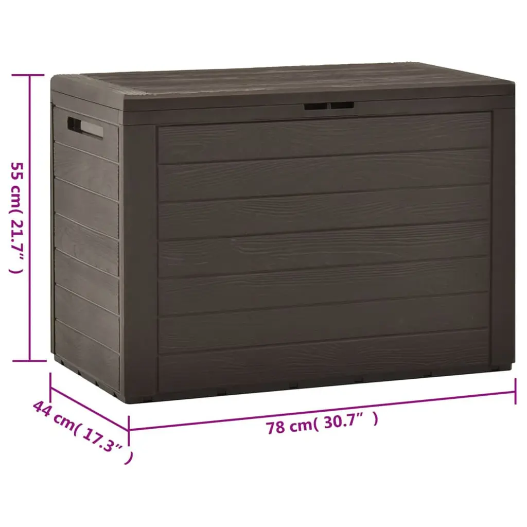 This Rectangular Garden Storage Box is a fantastic piece that mixes style with practicality, making it easy to keep your outdoor cushions, tools, and other gear organized. Its smart brown color means it fits right in with any garden or patio look, giving you a tidy and clean vibe while being ready for use indoors or out. The roomy design offers ample space for cushions, gardening tools, or outdoor gear, making your gardening or chill time hassle-free.Solid build from top-quality polypropylene means this storage solution will last no matter what the weather throws at it.Whether in a garage, terrace, or patio, the box fits right in while lifting the area's style.The smooth matte finish adds a touch of class while stopping pesky scratches and scuffs.With dimensions of 30.7 x 17.3 x 21.7 in and a decent capacity of 50.4 gallons, it's just the right size for your storage needs without being too bulky.