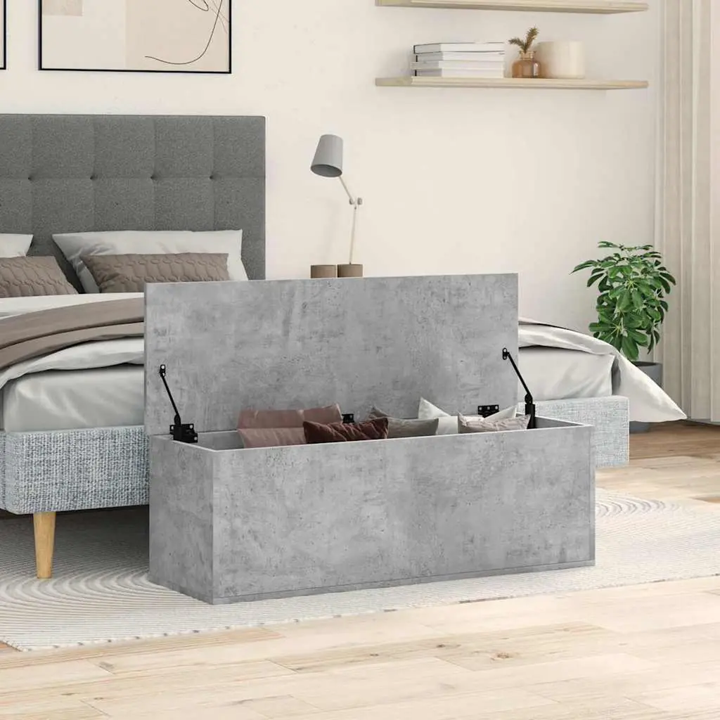This storage box is a practical way to keep your things organized. It's big enough for clothes, blankets, and toys, and its sleek concrete grey design fits perfectly with any home's vibe. Perfect for your living room or hallway! Ample Storage: This box has a generous space inside it, perfect for keeping kids' toys, beloved blankets, and all sorts of stuff organized and tidy. Durable Build: Made from high-quality engineered wood, it’s built to last and keeps looking elegant. Modern Aesthetic: The sleek design goes great with contemporary decor, adding a stylish touch to your place. Easy Maintenance: The smooth matte finish makes it super easy to clean. Just wipe with a dry cloth and steer clear of harsh chemicals to keep it looking nice. Versatile Use: Works well in different rooms like living rooms and hallways—it's a handy solution for a range of items that need a tidy home.