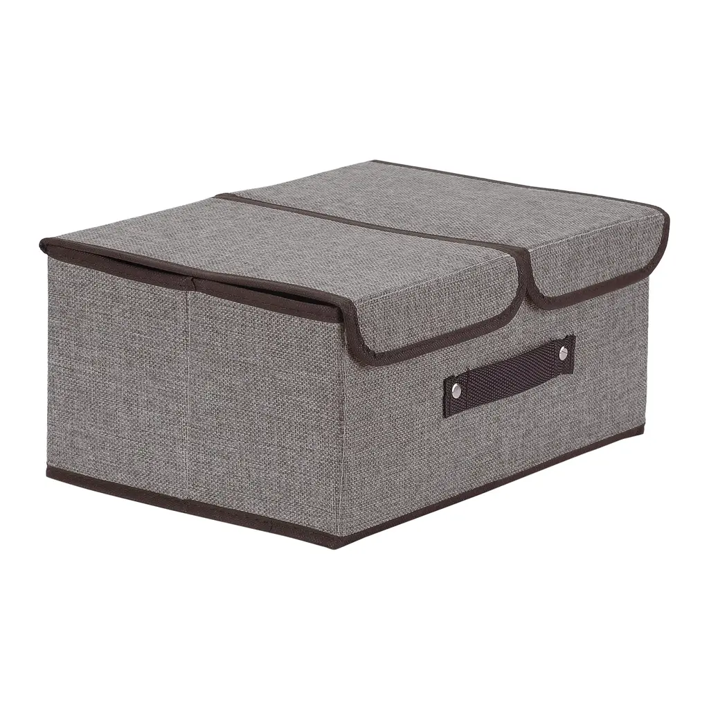 This medium-sized storage box combines practical use with a modern vibe, fitting right into any home organization setup. Its sleek grey fabric looks good and offers plenty of space for storing things like toys, scarves, or books, making it a handy addition to your living room or bedroom. Design: The classy grey color offers a trendy look and fits well with all sorts of interiors.Storage Options: Comes with two separate compartments, making it easy to keep all your things organized.Material Quality: Made from high-quality polyester fabric, ensuring it's durable and long-lasting.Foldable Feature: The box folds down flat when not in use, making it great for storing away.Versatile Use: Perfect for any inside space, catering to both grown-ups and kids who need a helping hand with organization.