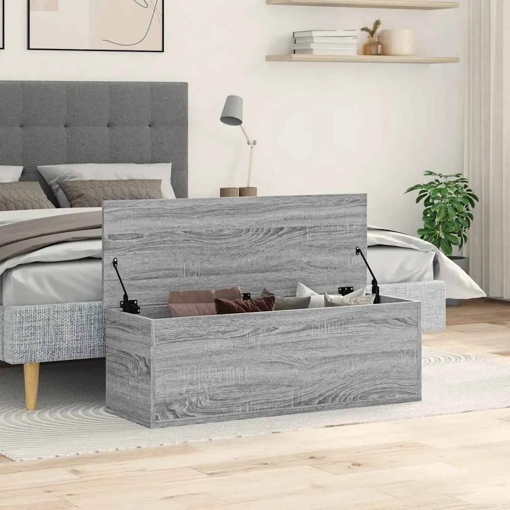 This storage box is a stylish and practical way to organize your living space. With its modern grey Sonoma finish, it fits right in with any room decor, giving you a handy spot for all those clothes, toys, and blankets. Ample Storage: The box has loads of space for stashing away different items, helping to keep your living areas clutter-free.Elegant Design: With its sleek, modern look, it adds a touch of sophistication to any space, whether it’s the living room, hallway, or bedroom.Durable Material: Made from high-quality engineered wood, it’s built to last and can handle daily use while still looking great.Easy Maintenance: Just a quick wipe with a dry cloth keeps it looking fresh, making it a practical choice for busy homes.Indoor Only Use: Designed specifically for indoor use, it's perfect for keeping your essentials organized and within reach.