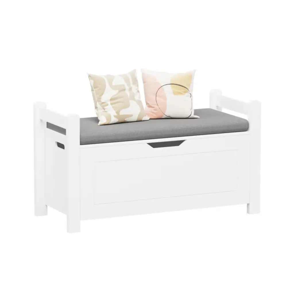 This storage box with cushion is a modern and handy solution for your living space. Made from high gloss white engineered wood, it fits right in with contemporary styles while offering awesome organization and comfort. Ample Storage: This box has plenty of space measuring 41.3 in long and 15.7 in wide for all sorts of items like blankets and toys. It's designed with your living space in mind, helping keep things tidy. Modern Appearance: With its smooth finish, this box boosts your home's look, becoming a highlight in any room. Its trendy vibe matches the latest in interior design. Comfort Padding: The cushioned top works as a seat for when you need a quick place to sit, great for getting ready or just chilling. This is a bonus in busy homes where space is limited. Easy Maintenance: The high gloss finish makes it super easy to clean, just a quick wipe with a damp cloth keeps it looking sharp. Versatile Use: Perfect for the living room or hallway, this storage box is made for everyday use. Its multi-purpose function suits a range of storage needs, fitting right into your lifestyle.