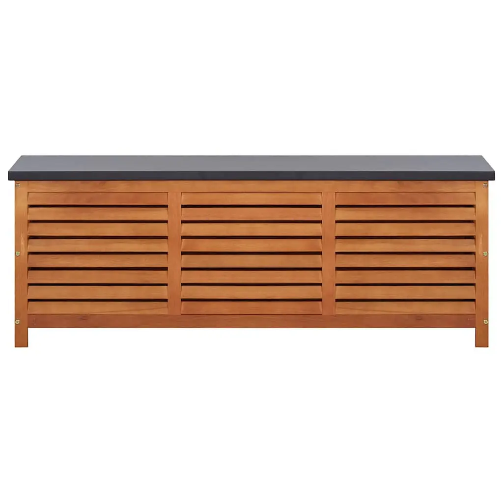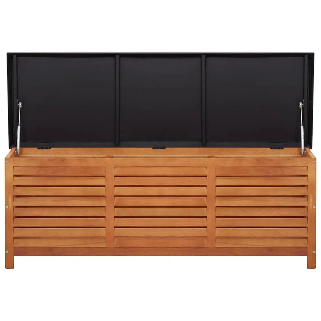 This outdoor garden storage box is both a smart solution for hiding away outdoor gear and a nice addition to your garden setup. Made from solid eucalyptus wood, it not only looks great but is built to last, making it perfect for storing cushions, tools, and other essentials safely. Ample Storage Capacity: The roomy interior of the storage box lets you keep a variety of outdoor items organized and shielded from the weather. There's enough space for cushions and gardening tools, helping keep your outdoor area tidy and clutter-free. Sturdy Construction: Built with solid eucalyptus wood, this box has a rugged design that offers strength and resilience. Eucalyptus wood is both tough and gives a lovely, natural vibe to your garden. Weather Resistance: The wood and powder-coated steel are treated to resist water and UV rays, ensuring your storage box stays in good shape despite the weather. Stylish Design: With its classic shape and sleek finish, this storage box complements various outdoor styles, from traditional to modern. The neutral color blends effortlessly into your patio or garden decor. Low Maintenance: Finished with natural oils, the wood keeps its good looks and protection from moisture with minimal fuss. A quick wipe down and a bit of oil every now and then will keep it lasting longer.