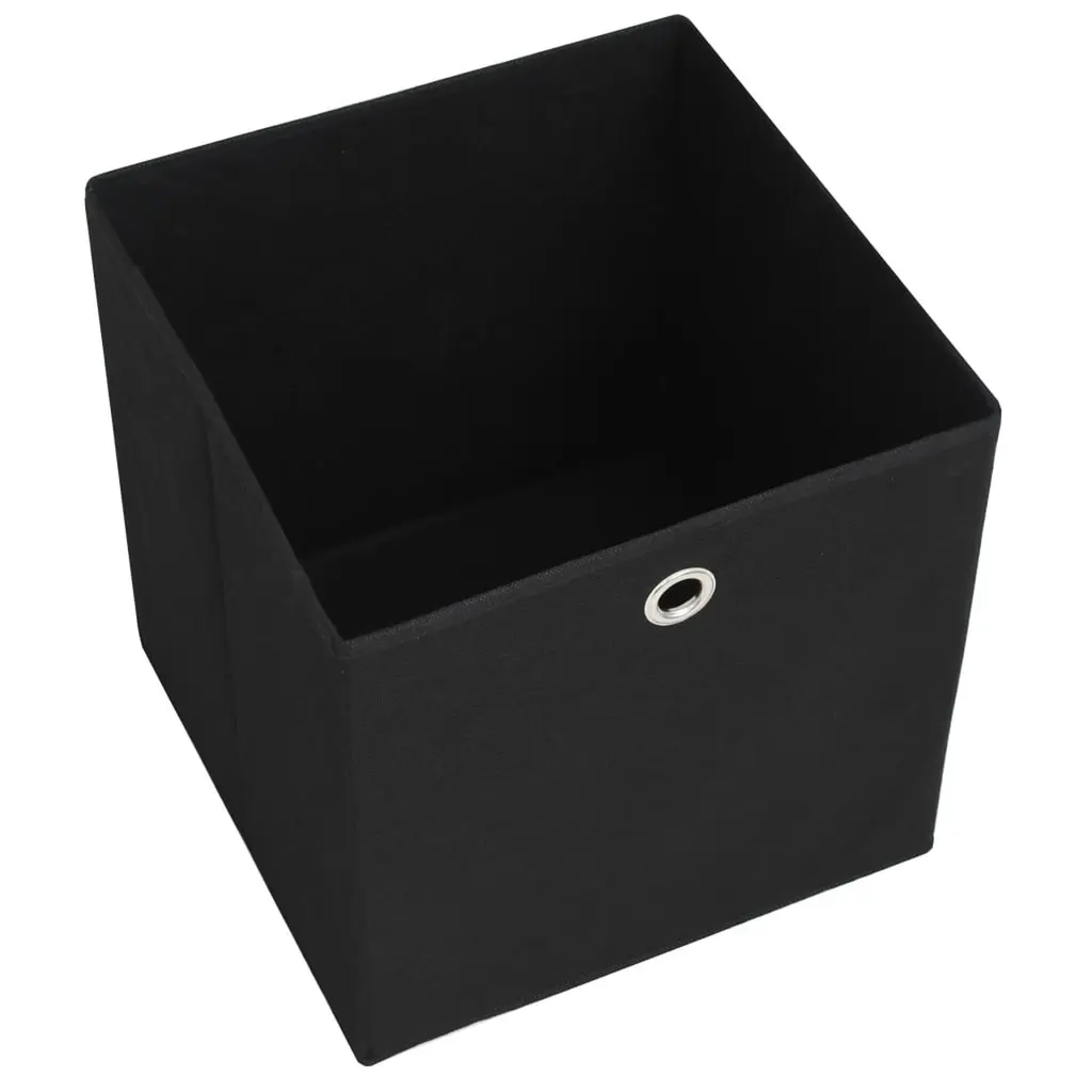 This set of four storage boxes is made for efficiently organizing your bits and bobs while adding a dash of style to your space. Ideal for bedrooms or closets, these cubic boxes are all about blending function with a contemporary look that fits right into any decor. The foldable design allows for easy transport and compact storage, ensuring they don’t take up unnecessary space when not in use.Made from breathable non-woven fabric, these boxes help keep stored items fresh and protected from dust, making them ideal for delicate garments.Each box provides generous space, measuring 11x11x11 in, making them ideal for storing everything from winter scarves to essential socks.The matte black finish is not only visually appealing but also versatile, allowing these boxes to suit various room aesthetics.Thoughtfully equipped with convenient metal eyelets, these boxes allow for hassle-free handling and easy access to your items.