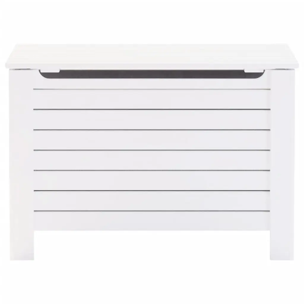 This White Solid Pine Storage Box with Lid is an elegant and functional addition to any living space, offering a perfect blend of utility and aesthetic charm. Crafted from durable solid pine wood, this rectangular storage solution boasts a smooth finish and measures 39.4 in in length, 19.3 in in width, and 21.3 in in height, making it ideal for stashing away blankets, toys, clothing, and cushions in a stylish and organized manner. Ample Storage: With its generous dimensions, this storage box offers plenty of space for keeping a wide range of items organized, from bedding to children's toys. No more clutter, as this box provides a designated place for your belongings, streamlining your living area.Ventilated Design: Designed with airflow in mind, this storage box is ideal for keeping items like shoes and seasonal clothing fresh. The ventilation helps prevent moisture build-up, safeguarding your belongings while maintaining a pleasant, musty-free environment.Durable Construction: Made from solid pine wood, this storage box is built to last. The sturdy materials ensure that it withstands the test of time, making it a reliable choice for your home and providing peace of mind regarding long-term use.Aesthetic Appeal: The farmhouse style of this storage box adds a touch of rustic elegance to your home decor. Its clean white finish complements various interior styles, making it an attractive addition to living rooms, hallways, or bedrooms.Easy Maintenance: This storage box is simple to care for, with easy-clean surfaces that resist stains and dust accumulation. Gentle cleaning with a soft cloth is all it takes to keep this piece looking fresh and new.