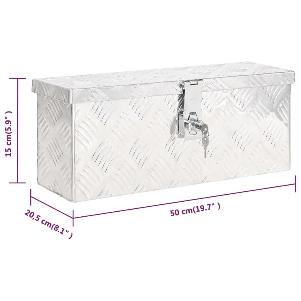 Vidaxl Tool Box Outdoor Storage Box With Locking System Tool Chest Aluminum - 19.7"x5.9"x8.1" - Silver