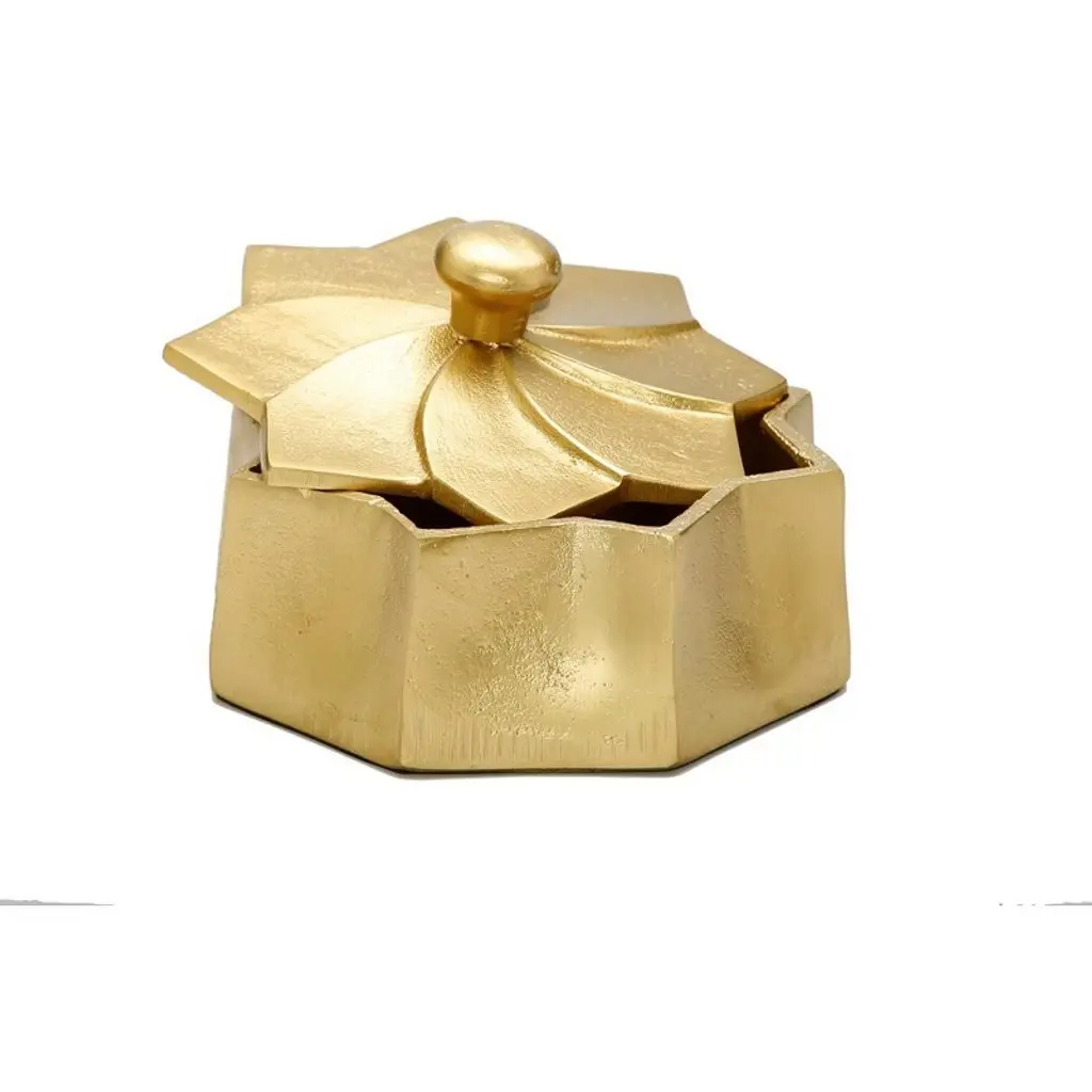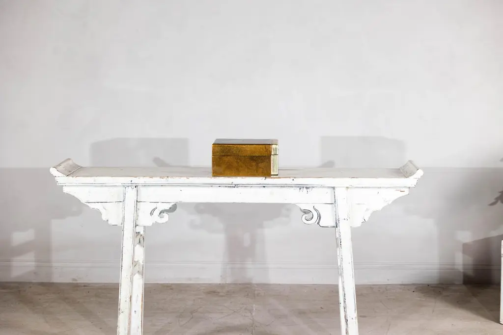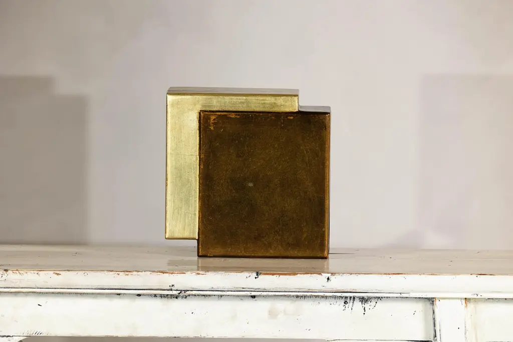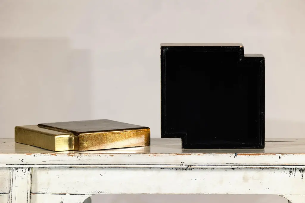 This striking vintage Chinese two-toned decorative box captures the artistry of traditional craftsmanship while offering a unique, geometric design. Cloaked in a rich gold finish with subtle patina, this wooden box exudes understated opulence. Its asymmetrical design adds an element of modernity to its classic aesthetic, seamlessly blending form and function. The two-toned gilded surface lends depth and character, making it a versatile accent piece for contemporary or traditional interiors alike.This box serves as an elegant storage solution for small treasures, such as jewelry or keepsakes, while doubling as a statement piece on a coffee table or console. Its compact size makes it ideal for layering with other decorative objects, like books or vases, to create a sophisticated vignette. Its golden hues effortlessly catch the light, adding warmth and texture to any room.Whether used in an entryway for stowing keys or as a striking accent on a shelf, this decorative box elevates everyday utility into an art form. Perfect for collectors and design enthusiasts, it bridges the gap between vintage charm and modern elegance, making it a timeless addition to your home.