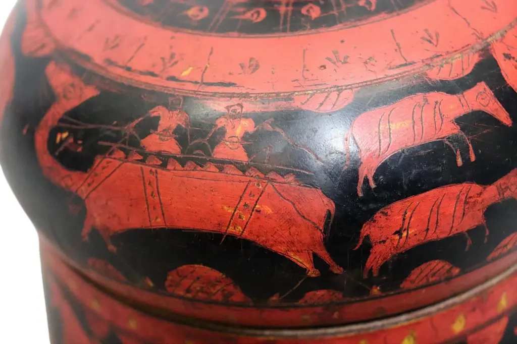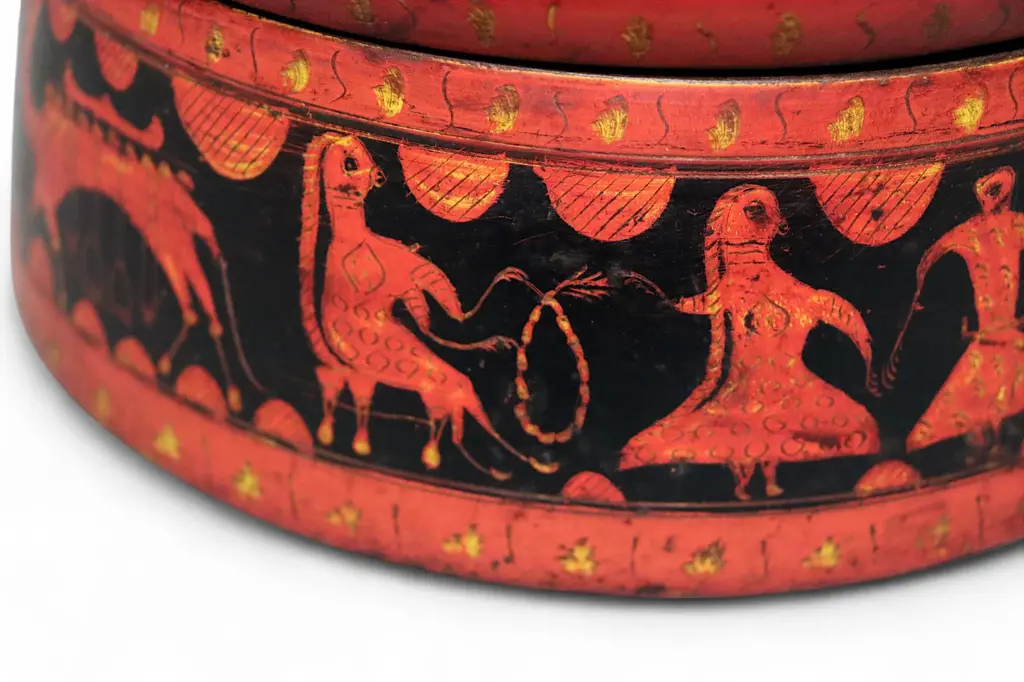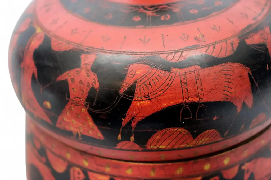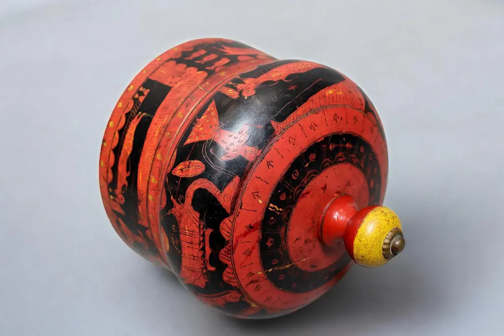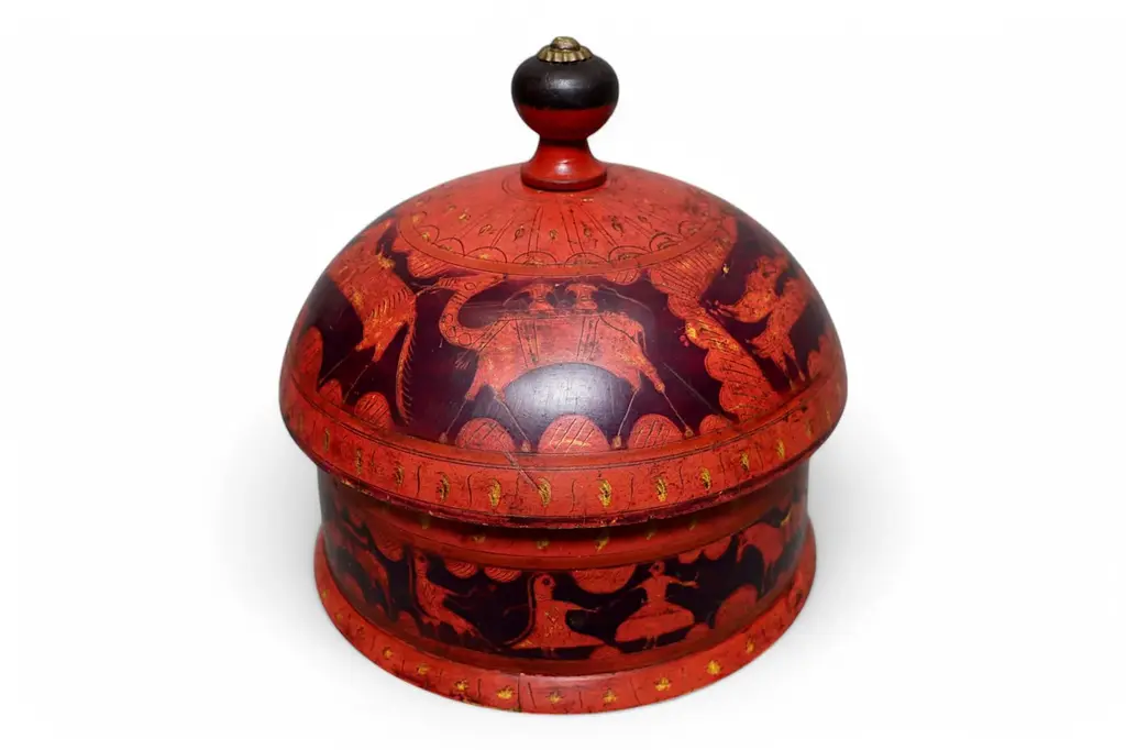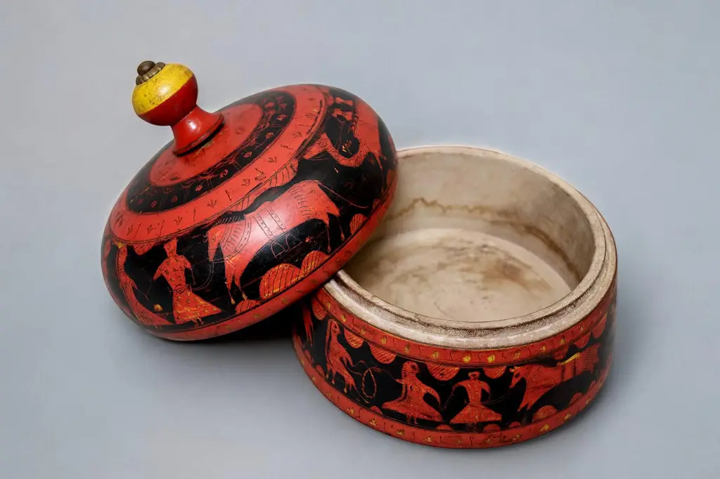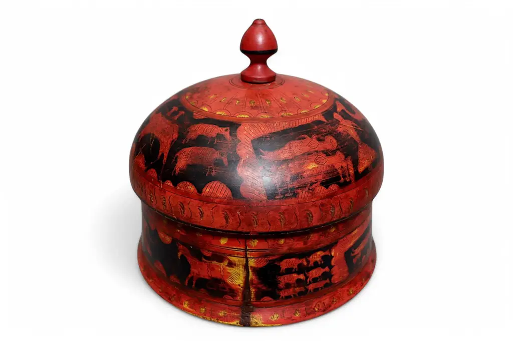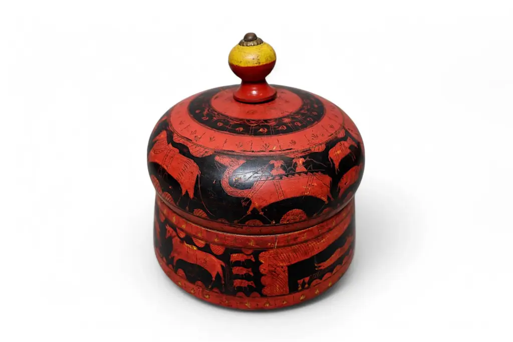 Vintage Handpainted Wooden Lacquerware Spice Box,, 1950s