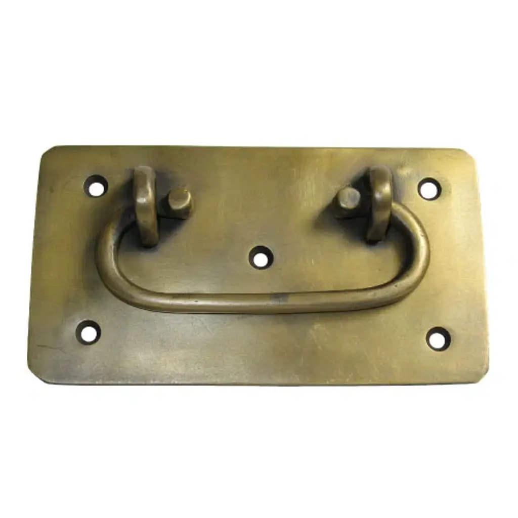 Vintage brass ice box hinge with a nickel finish. Inscribed Process and 364 on the back. The original mounting screws are not available. Priced each. The manufacturer and exact date of creation are unknown. The dimensions are 7.625 in. L x 4.125 in. W x 0.625 in. D.