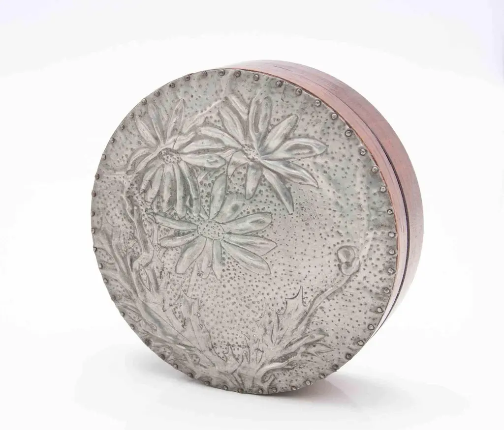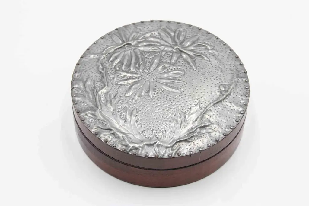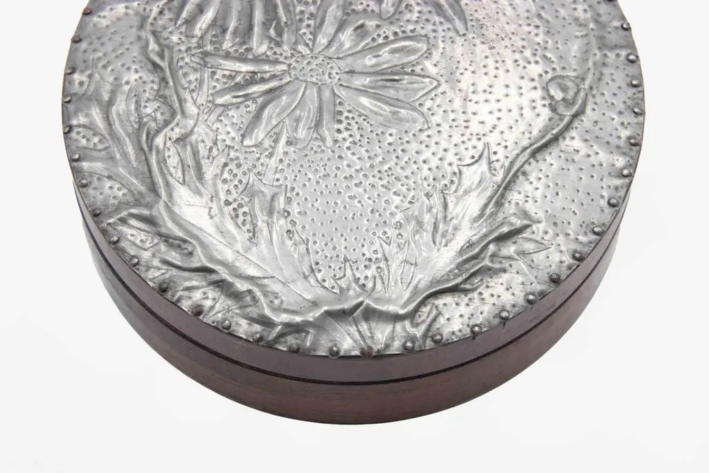 Vintage Pewter And Wooden Round Box, Italy, Early 20th Century
