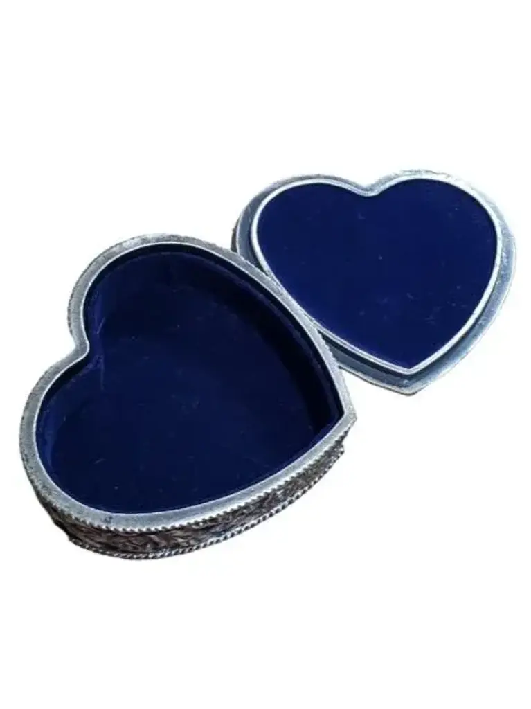 Vintage Pewter Heart-Shaped Velvet Lined Trinket Box
