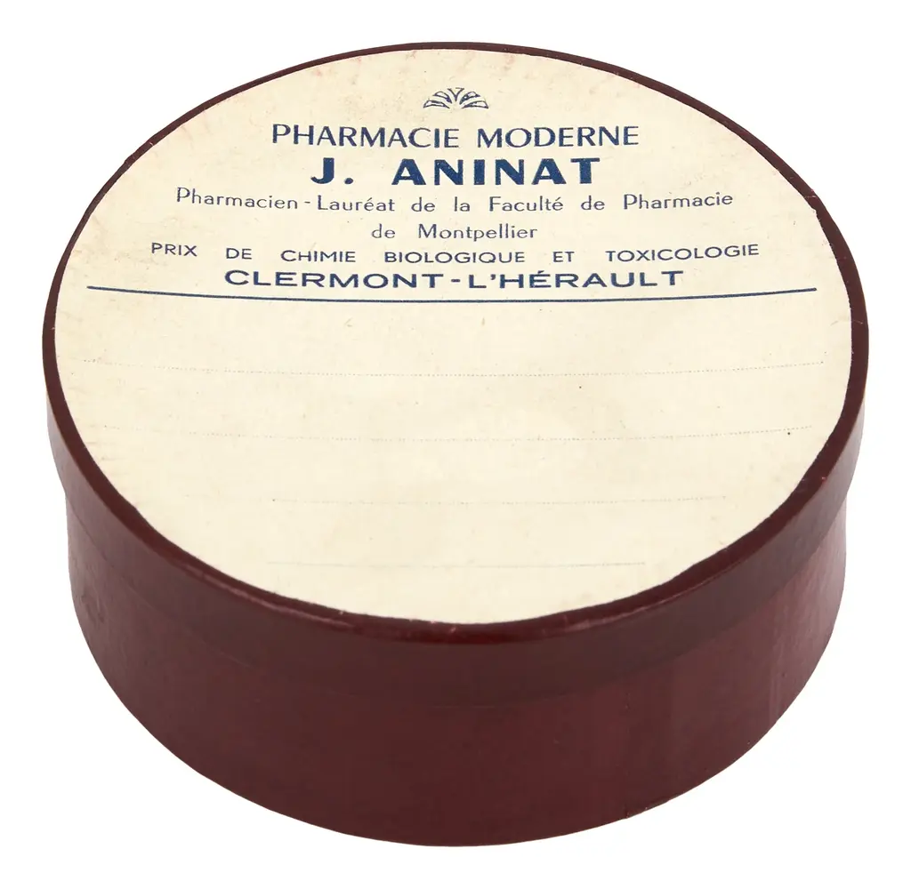 •from a pharmacy in montpellier•patinaed paper•20th century•france Dimensions•3.5"diameter x 1.5"H •up to 8 available (pending availability)