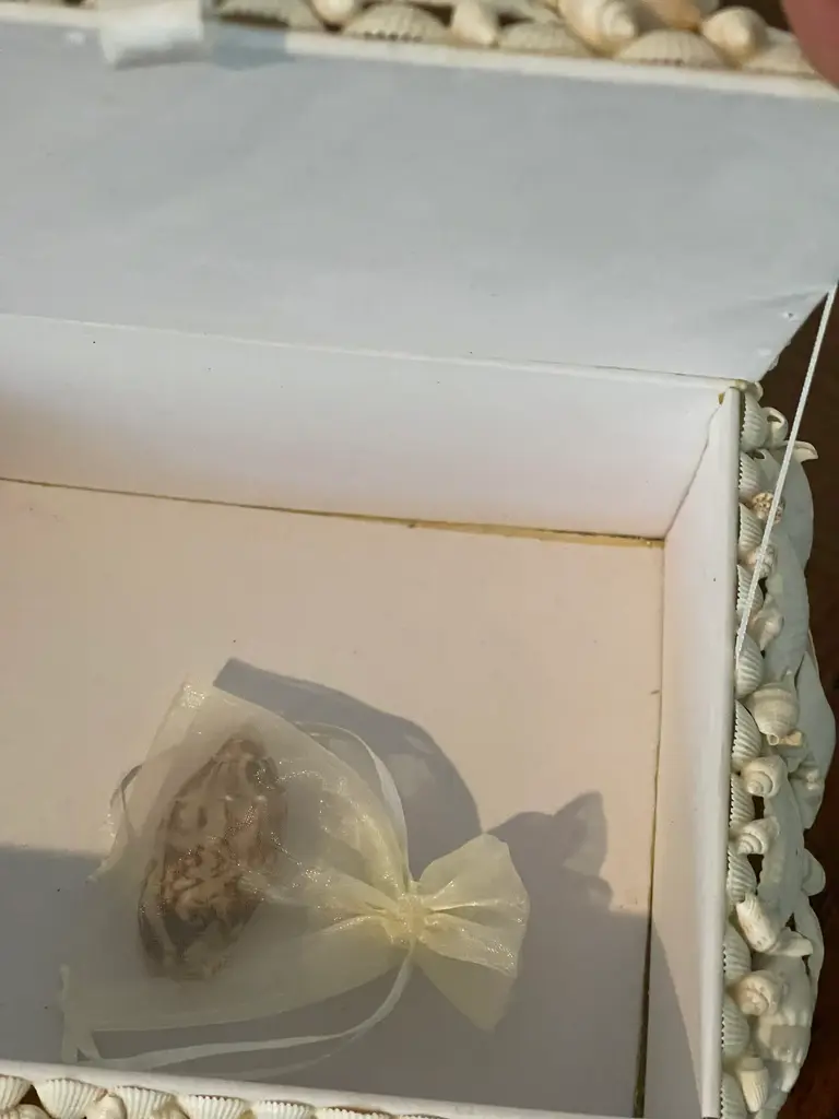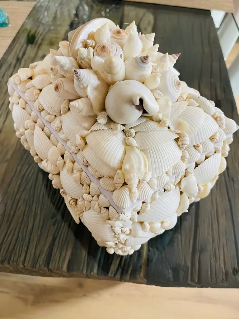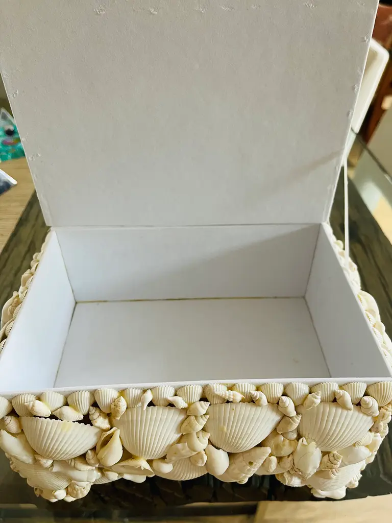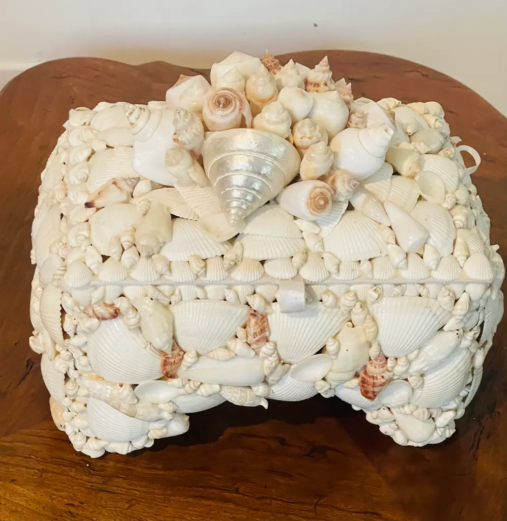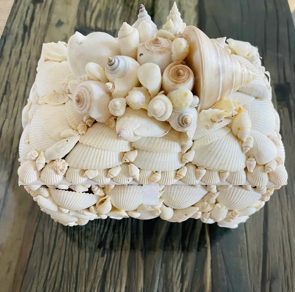 Great selection of sea shells encrusted jewelry box . Redmille style. Great wedding gift.