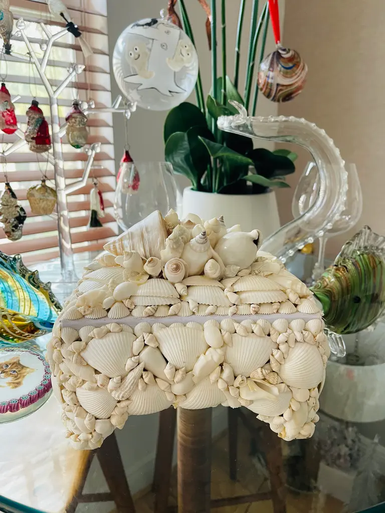 Vintage Wedding Sea Shell Encrusted Jewelry Box Maitland Smith Style