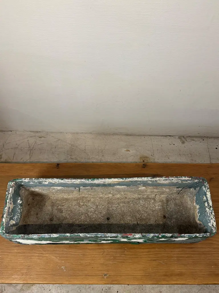 Vintage Willy Guhl Fiber Cement Planter Rectangular With Distressed Green Paint