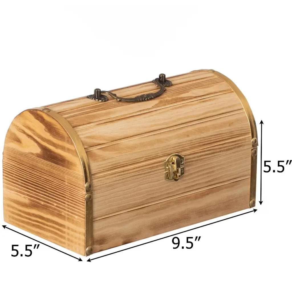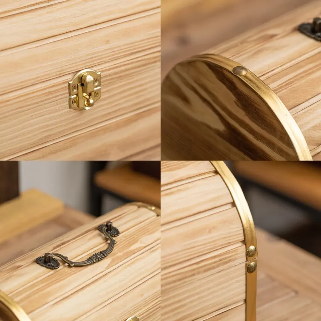 Vintiquewise Unfinished Wooden Treasure Chest Arched Lid Gold Metal Accents Front Locking Latch & Top Handle Decorative Storage Box