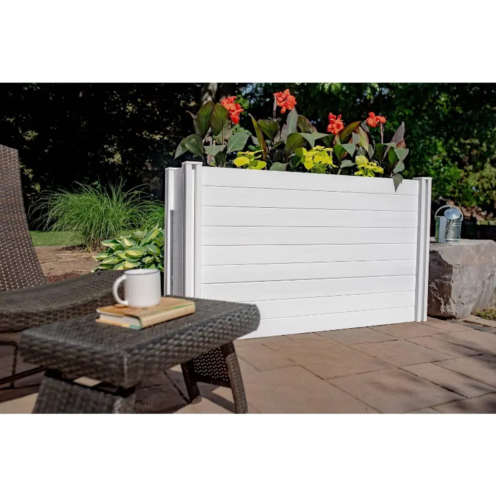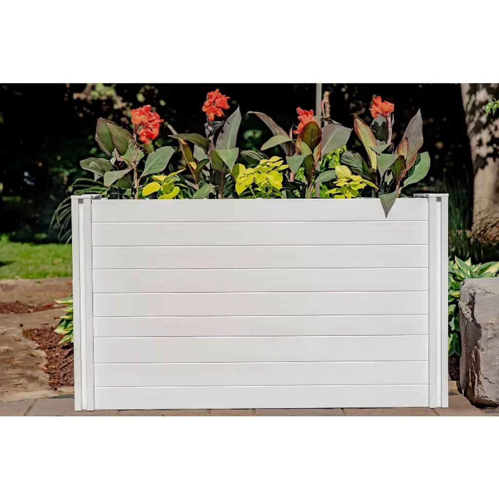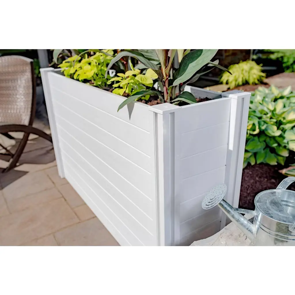 The Classic Large Parklette Planter adds a stylish and versatile accent to any space. Use it on its own along a wall or pathway, together with multiples to create a border or define a space or try mixing and matching with the Classic Small Parklette Planter. Crafted from a durable BPA and phthalate-free vinyl, it’s simple to build and easy to use and maintain. SpecificationsDimensions: 59.10” L x 16.25” W x 33.60” H Assembled Weight: 57.3 lbs. Planter Depth Options: 8” or 12” Soil Capacity: 2.8 cubic feet - 4.4 cubic feet (please see instructions for more soil capacity information) Posts: 3”x3” Tools Required: Assembly can be completed quickly with drill and Phillips head bit #2Number of Boxes: 1