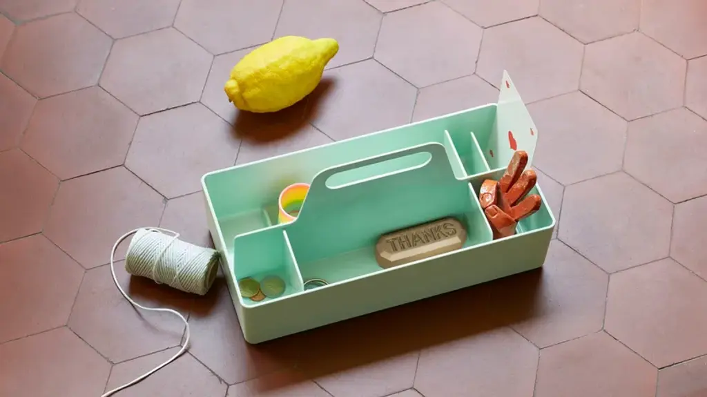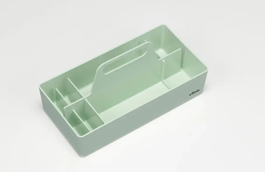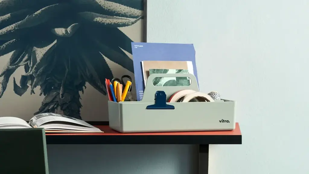 Toolbox RE is a practical organiser for storing and transporting small work utensils and accessories. It is made of recycled plastic from industrial waste – and at the end of its product lifespan, it is also 100% recyclable. Toolbox RE is available in a selection of colours.Material for Toolbox RE in diverse colours: post-industrial recycled ABS plastic, 100% reyclable.