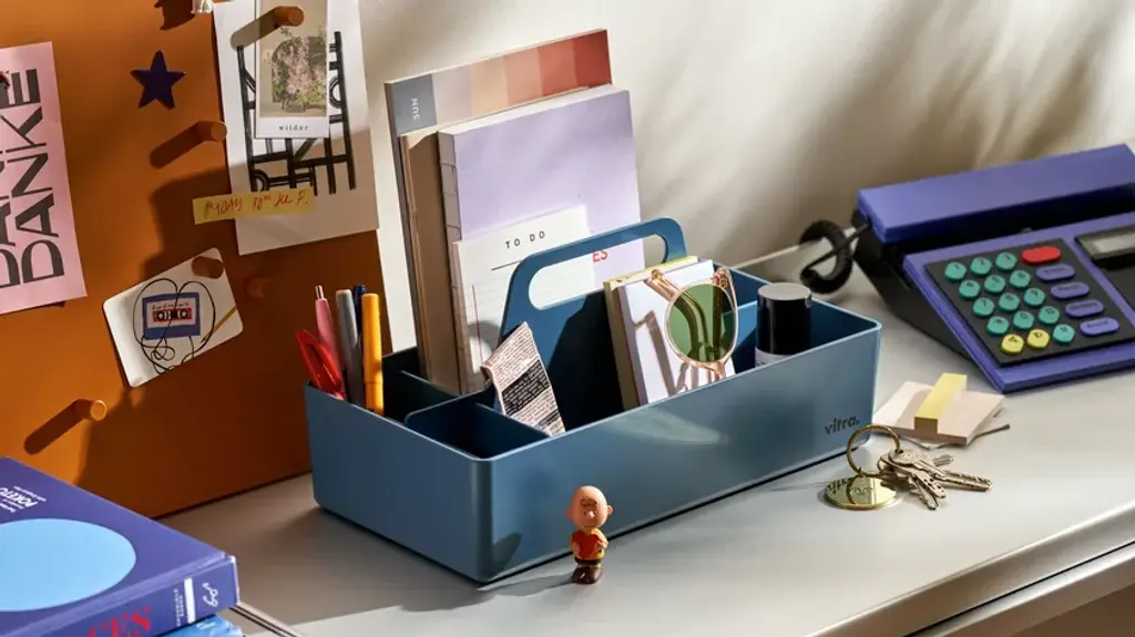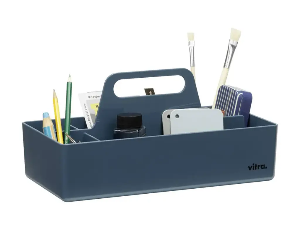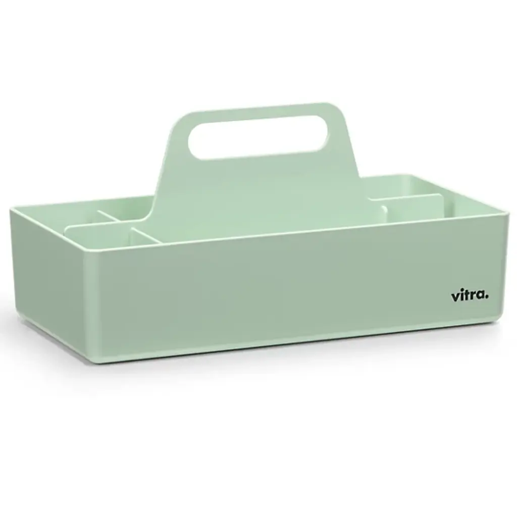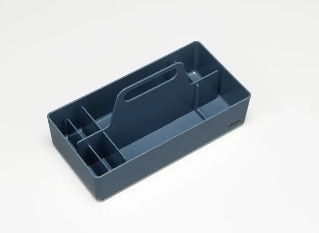 Toolbox RE is a practical organiser for storing and transporting small work utensils and accessories. It is made of recycled plastic from industrial waste – and at the end of its product lifespan, it is also 100% recyclable. Toolbox RE is available in a selection of colours.Material for Toolbox RE in diverse colours: post-industrial recycled ABS plastic, 100% reyclable.