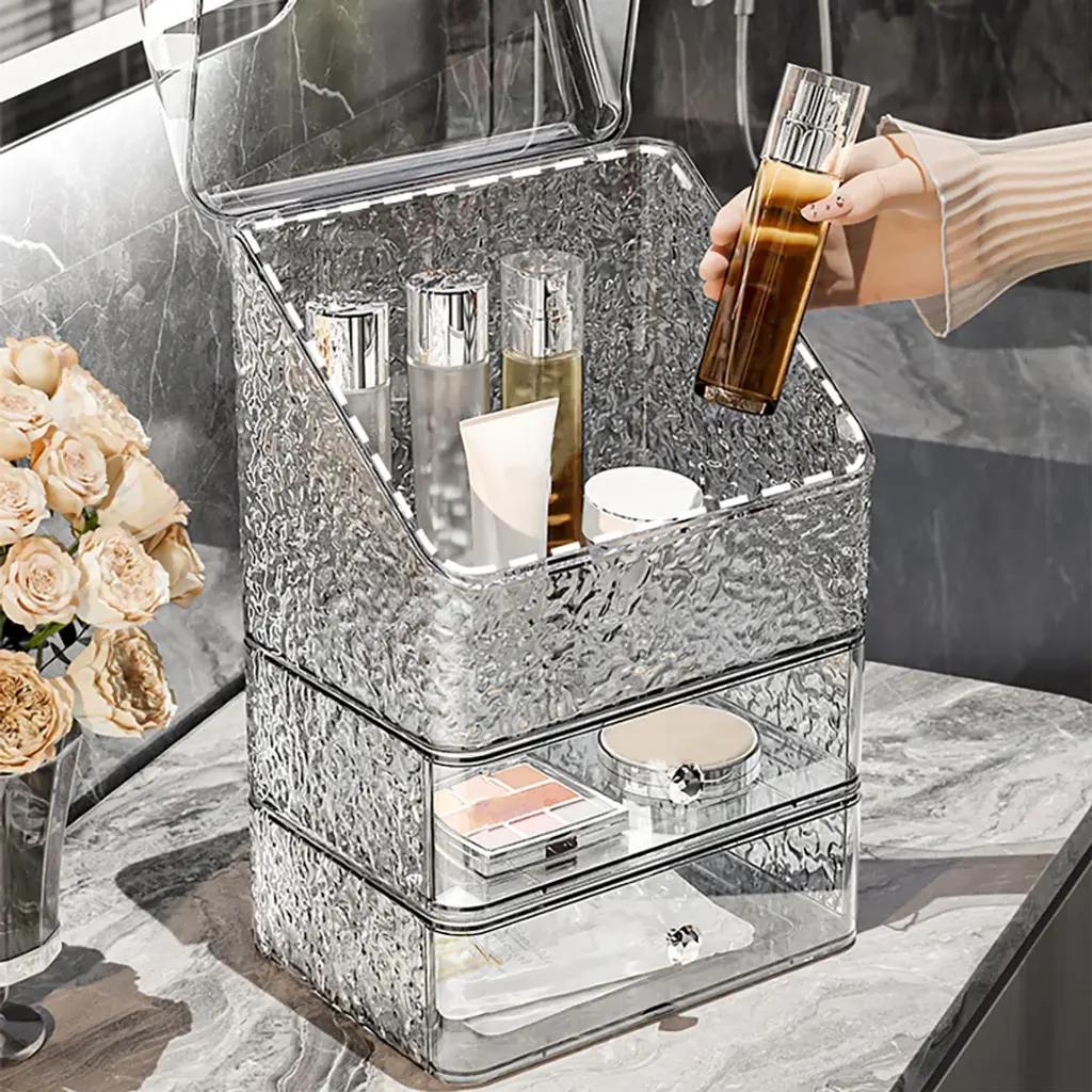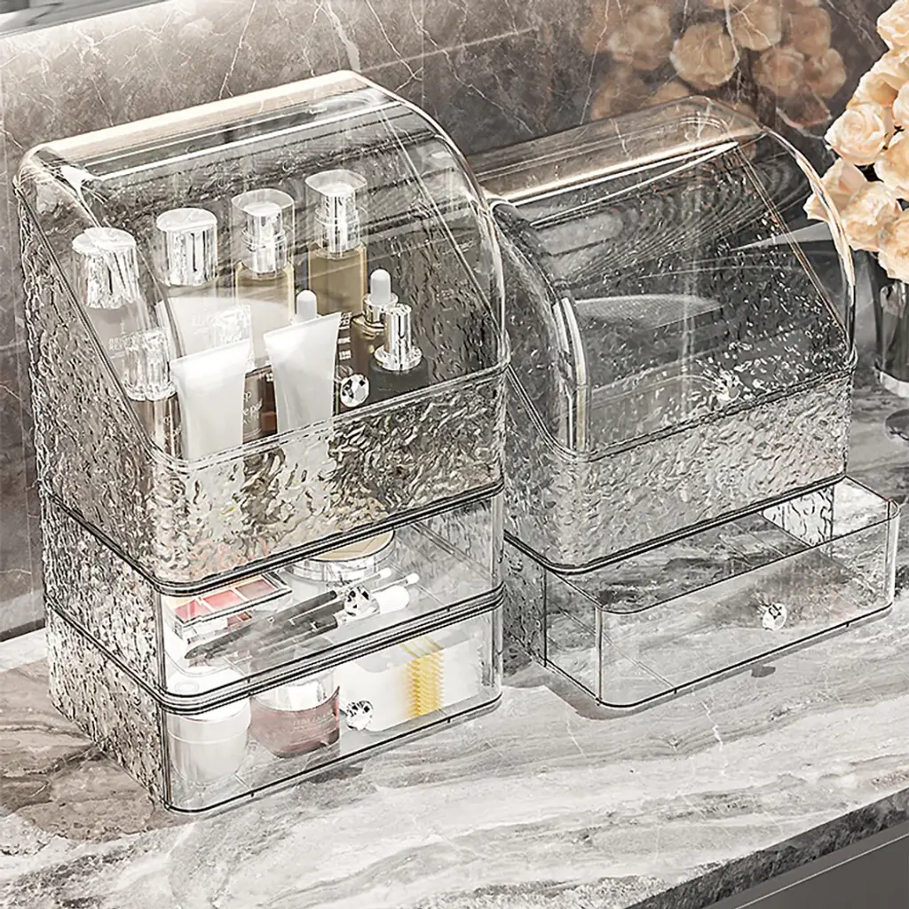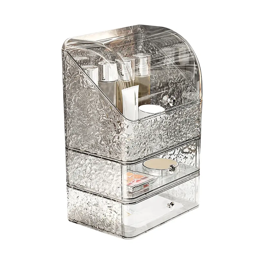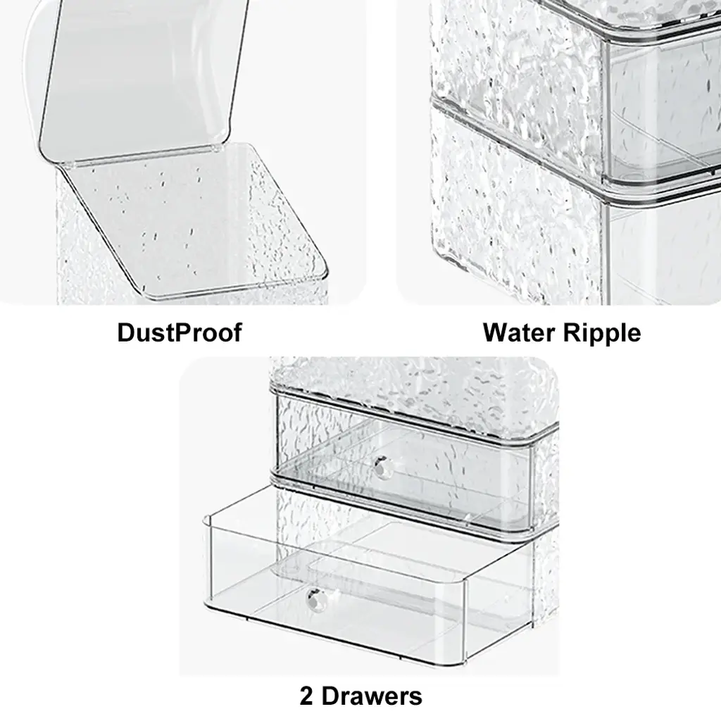 Water Ripple Makeup Organizer Desktop Cosmetic Storage Box With 2 Drawers In Clear