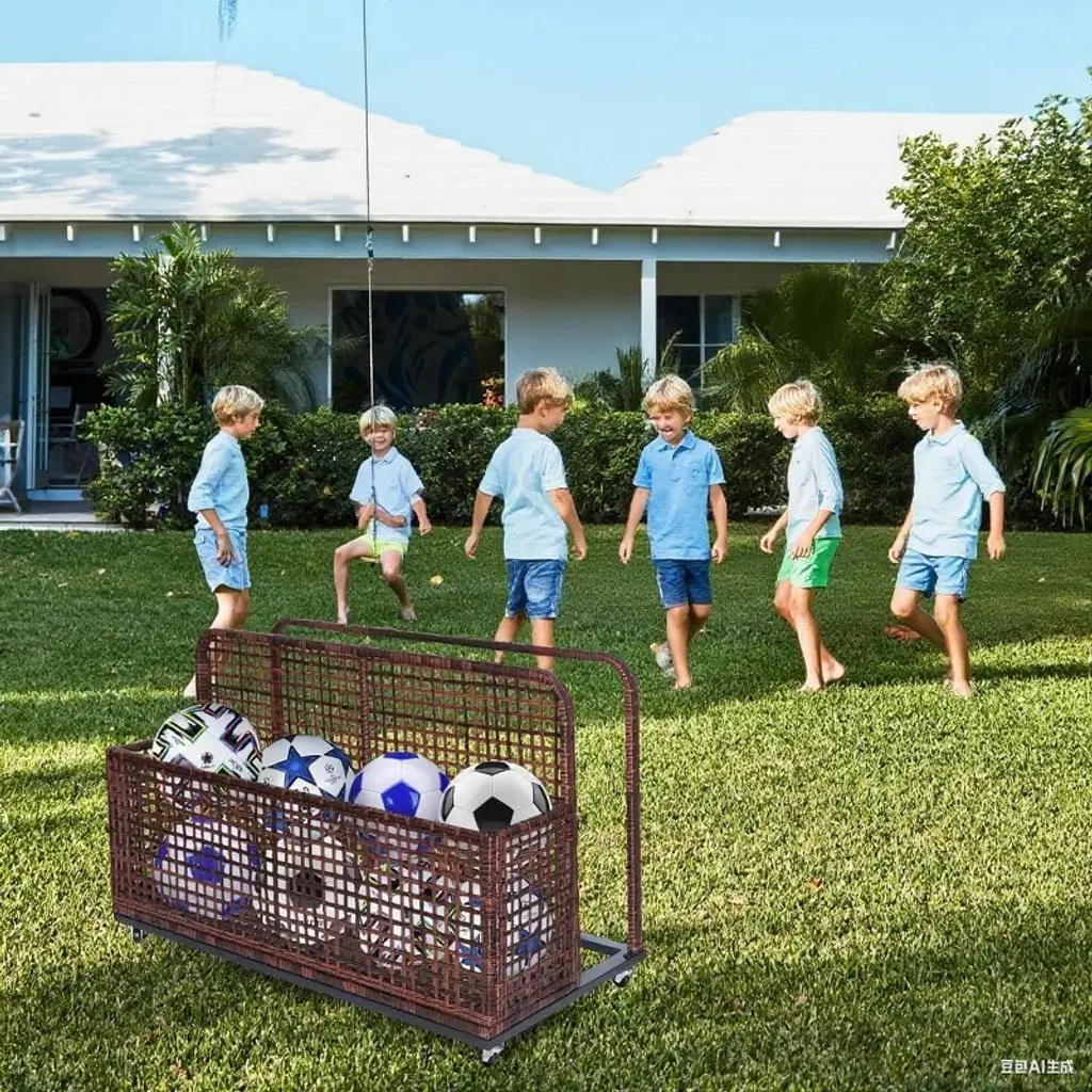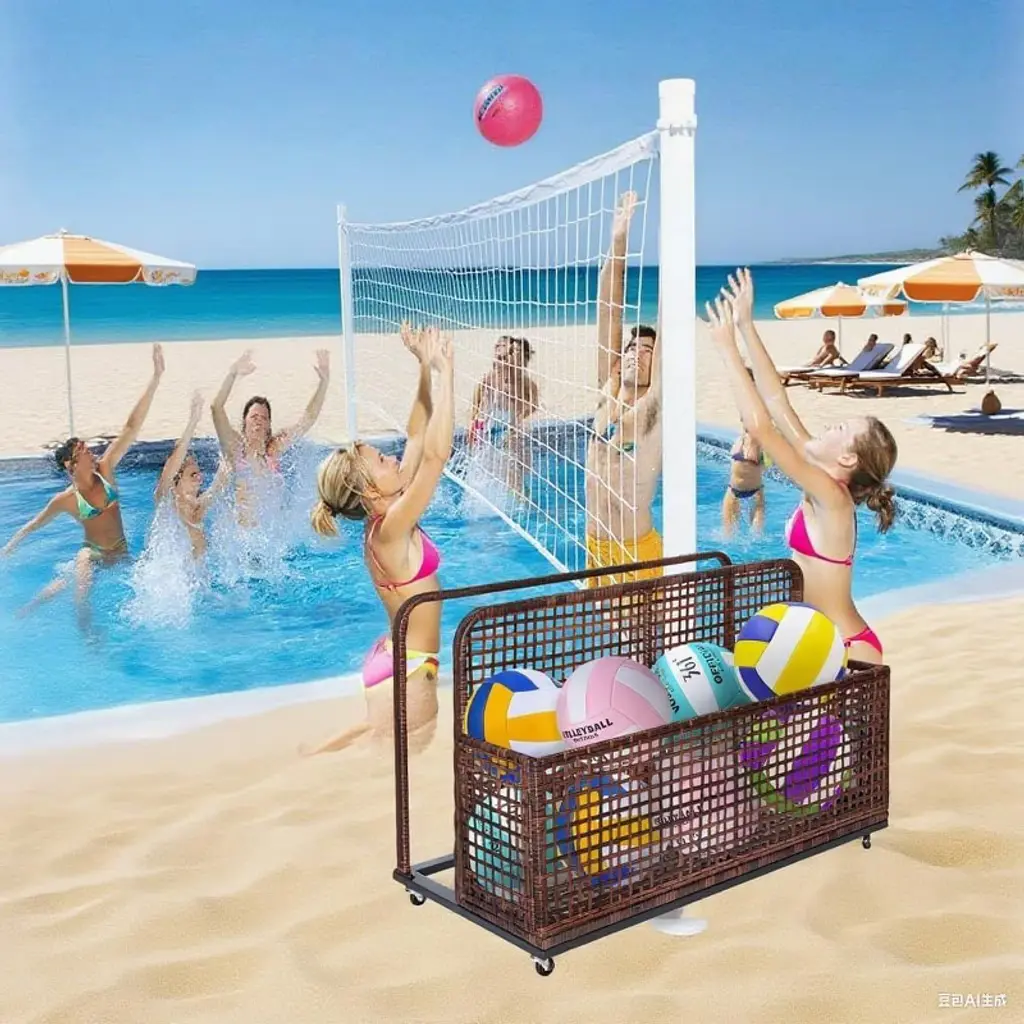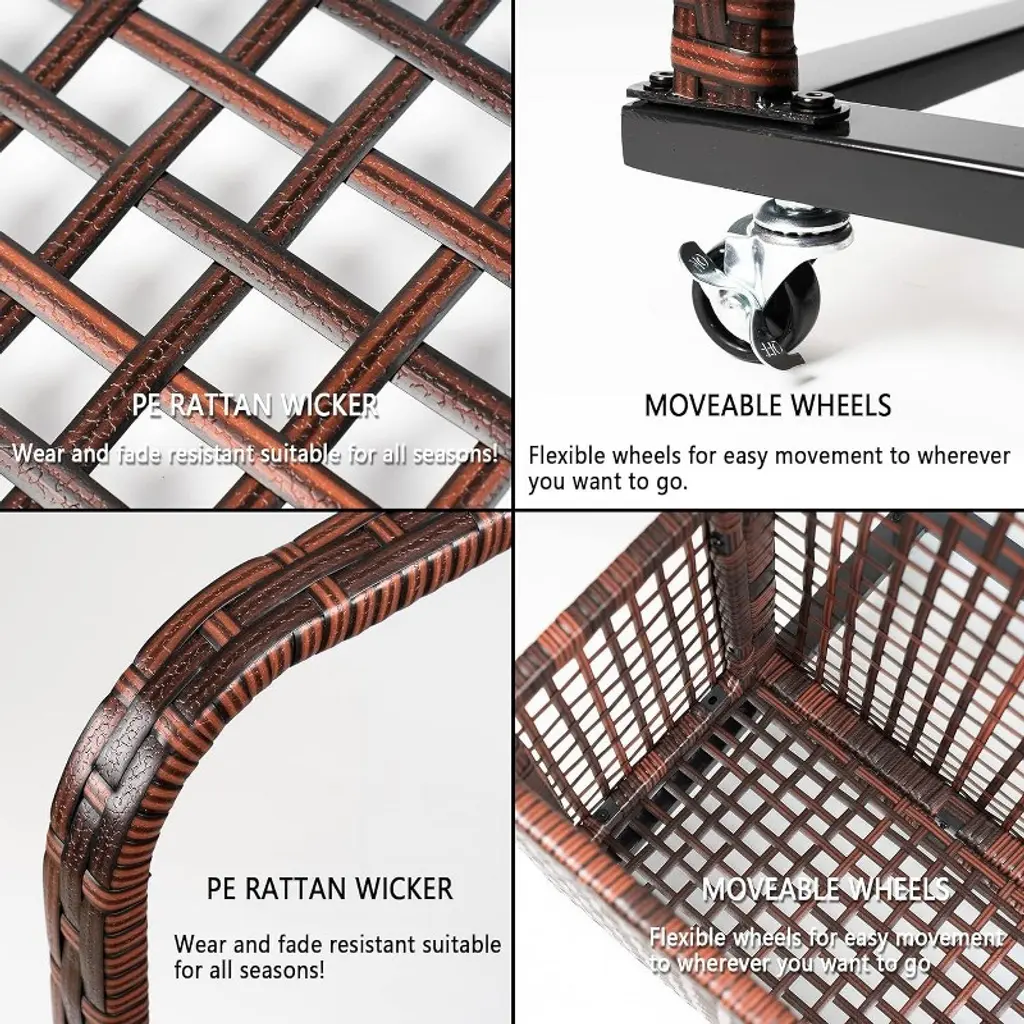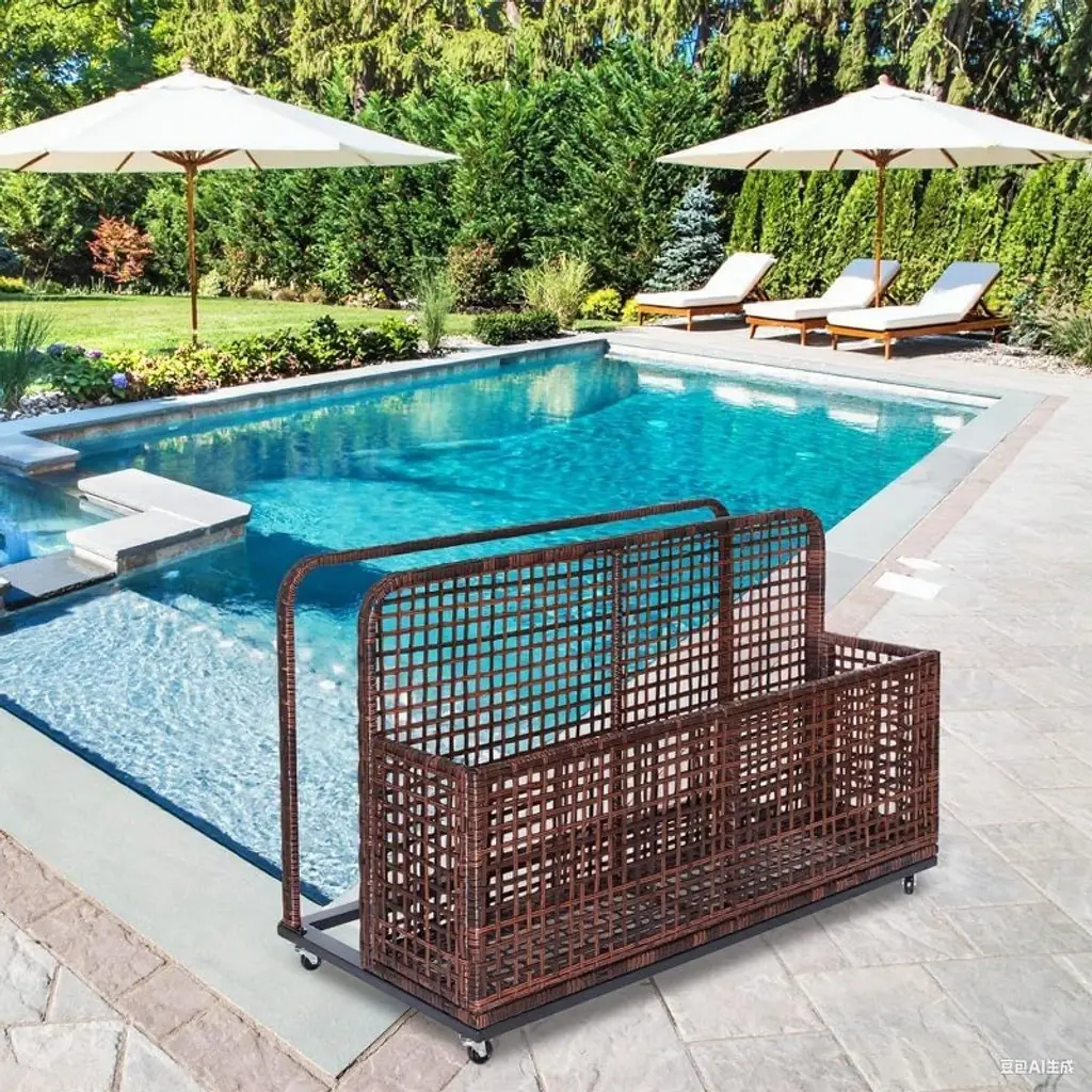 Waterproof Wicker Pool Float Storage Basket With Rolling Wheels, Large Outdoor Organizer, Patio Deck Box For Backyard And Poolside Use