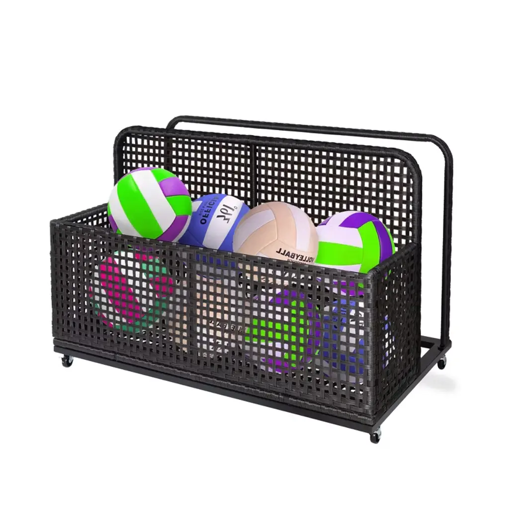 Waterproof Wicker Pool Float Storage Basket With Rolling Wheels, Large Outdoor Organizer, Patio Deck Box For Backyard And Poolside Use