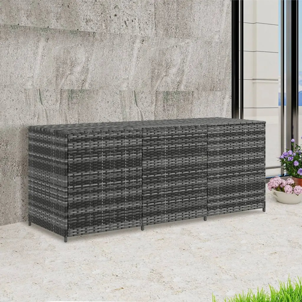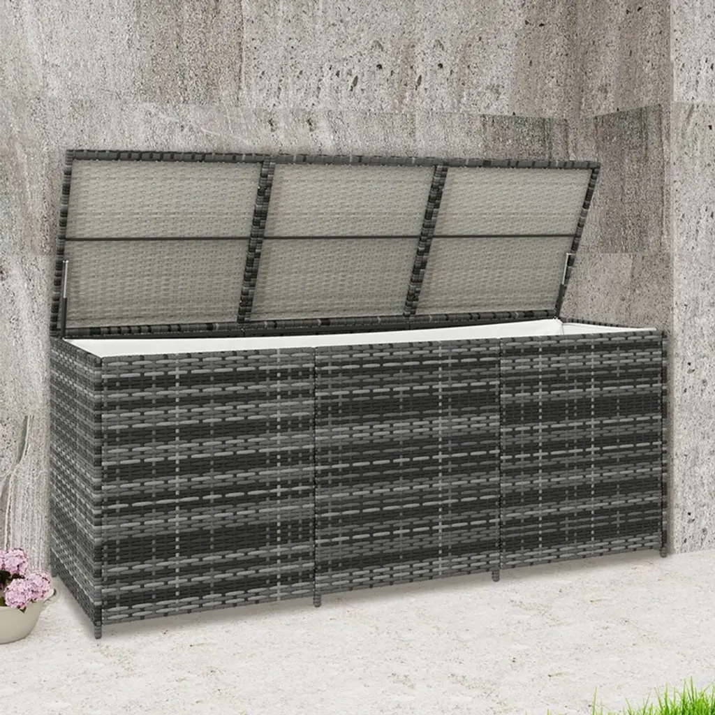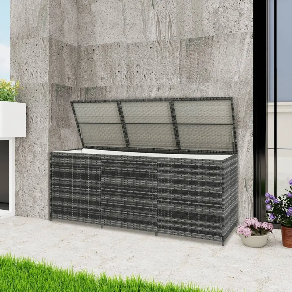 Wellfor 175gal Outdoor Storage Box Pe Rattan Wicker Deck Box With Inner Liner Gray